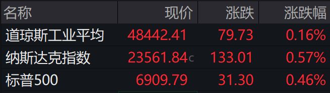 美股市场表现 - 美国股市周二收高,标普500指数创下收盘新高,道琼斯工业指数上涨79.73点涨幅0.16%至48442.41点,标普500指数上涨31.30点涨幅0.46%至6909.79点,纳斯达克指数上涨133.02点涨幅0.57%至23561.84点 [2] - 标普500成长股指数上涨0.8%,而价值股指数基本持平,市场资金更青睐具备盈利确定性的成长型龙头 [2] - 大型科技股整体走强,英伟达上涨3.01%为标普500指数提供最大支撑,博通上涨2.30%,亚马逊上涨1.62%,谷歌A股上涨1.48%,谷歌C股上涨1.40%,苹果上涨0.51%,微软上涨0.40%,Meta上涨0.52%,特斯拉则小幅下跌0.65% [2] - 人工智能相关股票延续反弹,扭转了上周因估值偏高及资本开支压力引发的回调 [2] 中概股与行业板块 - 中概股表现分化,阿里巴巴上涨0.18%,拼多多上涨0.13%,骇维金属加工大涨50.60%,百度下跌0.47%,京东微跌0.03%,腾讯控股ADR下跌1.70%,蔚来下跌2.20%,阿特斯太阳能大跌11.80% [3] 宏观经济数据 - 美国第三季度国内生产总值环比年率增长4.3%,为2023年第三季度以来最快增速,高于经济学家预期的3.3%,主要受消费者支出拉动 [3] - 美国12月消费者信心指数降至89.1,低于11月修正后的92.9,为今年4月以来最低水平,反映出就业和收入前景担忧加深 [3] 债券与利率市场 - 受经济增长数据超预期影响,美债短端收益率走高,市场对美联储年初降息的押注有所降温,两年期美债收益率上涨3.81个基点至3.544% [3][4] - 10年期美债收益率尾盘报4.171%基本持平 [4] - 美国财政部当日标售700亿美元五年期国债,投标倍数为2.35,低于历史平均水平 [4] - 有分析认为美联储正在为明年初“暂停降息”铺路,这对中期国债并非利好 [4] 大宗商品市场 - 现货白银上涨3%至每盎司71.06美元,再创历史新高,今年累计涨幅达145%,长期供给短缺与工业需求上升是主要推动力 [4] - 现货黄金上涨0.8%报每盎司4478.52美元,盘中刷新纪录高位 [4] - 国际油价小幅走高,纽约原油期货收于每桶58.38美元 [5]