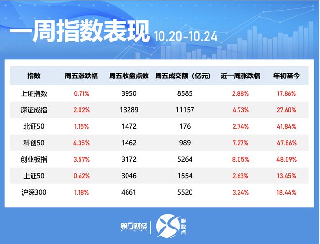 美股市场表现 - 美国主要股指再创历史新高,标普500指数首次触及6800点,三大股指均实现连续第二周上涨,标普500指数和纳斯达克综合指数创下自8月以来的最大单周涨幅 [1][6] - 各版块呈现普涨格局,科技行业周涨幅近2.8%领涨,能源行业涨2.4%,工业板块上涨2.1%,非必需消费品与医疗保健板块均上涨1.9%,金融、房地产和通信服务板块涨超1%,原材料板块涨0.6%,仅必选消费品和公用事业小幅走低 [6] - 投资者风险偏好上升,近一周投资者净买入价值96.5亿美元的美国股票基金,结束了此前连续两周净流出 [6] 宏观经济数据与通胀 - 美国9月消费者物价指数(CPI)环比上涨0.3%,低于8月的0.4%,同比增速从8月的2.9%升至3%,低于预期的3.1% [3] - 核心CPI环比涨幅从8月的0.3%放缓至0.2%,同比涨幅从8月的3.1%降至3%,也好于市场预期 [3] - 10月美国消费者信心指数终值降至53.6,连续第三个月下降,通胀和高物价仍是消费者关注的核心问题 [3] - 10月美国制造业和服务业活动均有所增长,推动私营部门产出以三个月来最快速度扩张,本季度美国经济增速预期高达3.9% [4] 美联储政策与市场预期 - 9月通胀数据强化了市场对美联储下周再次降息的预期 [3] - 市场预期今年还将有两次25个基点的降息,2026年将再进行两次类似降息,而美联储9月"点阵图"显示2025年计划降息两次,明年计划再降息一次 [5] - 若就业未出现进一步恶化,美联储在推出更多降息举措时将采取谨慎态度,通胀风险在明年政策考量中的权重将显著上升 [5] 企业财报与行业焦点 - 企业季度财报表现向好提振市场风险情绪,IBM表现尤为突出,周涨9.3%,该公司上调了全年营收增长预期并公布了超预期的第三季度业绩 [6] - 市场的核心关注点将是大型科技公司的第三季度财报,这些企业均与人工智能相关,关于人工智能资本支出计划的数据对盈利表现和股市进一步上涨至关重要 [7] 未来一周市场催化剂 - 未来一周市场将聚焦三大关键催化剂:大型科技股财报、中美贸易会谈和美联储会议 [7] - 市场对下周这三大催化剂的预期已处于极高水平,若所有事件均如预期发展,股市或继续走高,反之波动性可能卷土重来 [8]