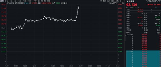 贵金属市场行情 - 现货白银价格在2月27日出现显著拉升,日内涨幅一度扩大至5%,当前报价为92.139美元/盎司 [1] - 现货黄金价格在突破5200美元/盎司后,涨幅再度扩大至1%,当前报价为5224.790美元/盎司 [3]