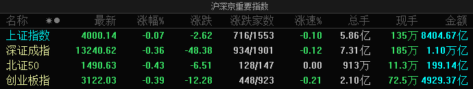 市场探底回升,沪指微跌0.07%险守4000点,医药等防御性板块逆势走强