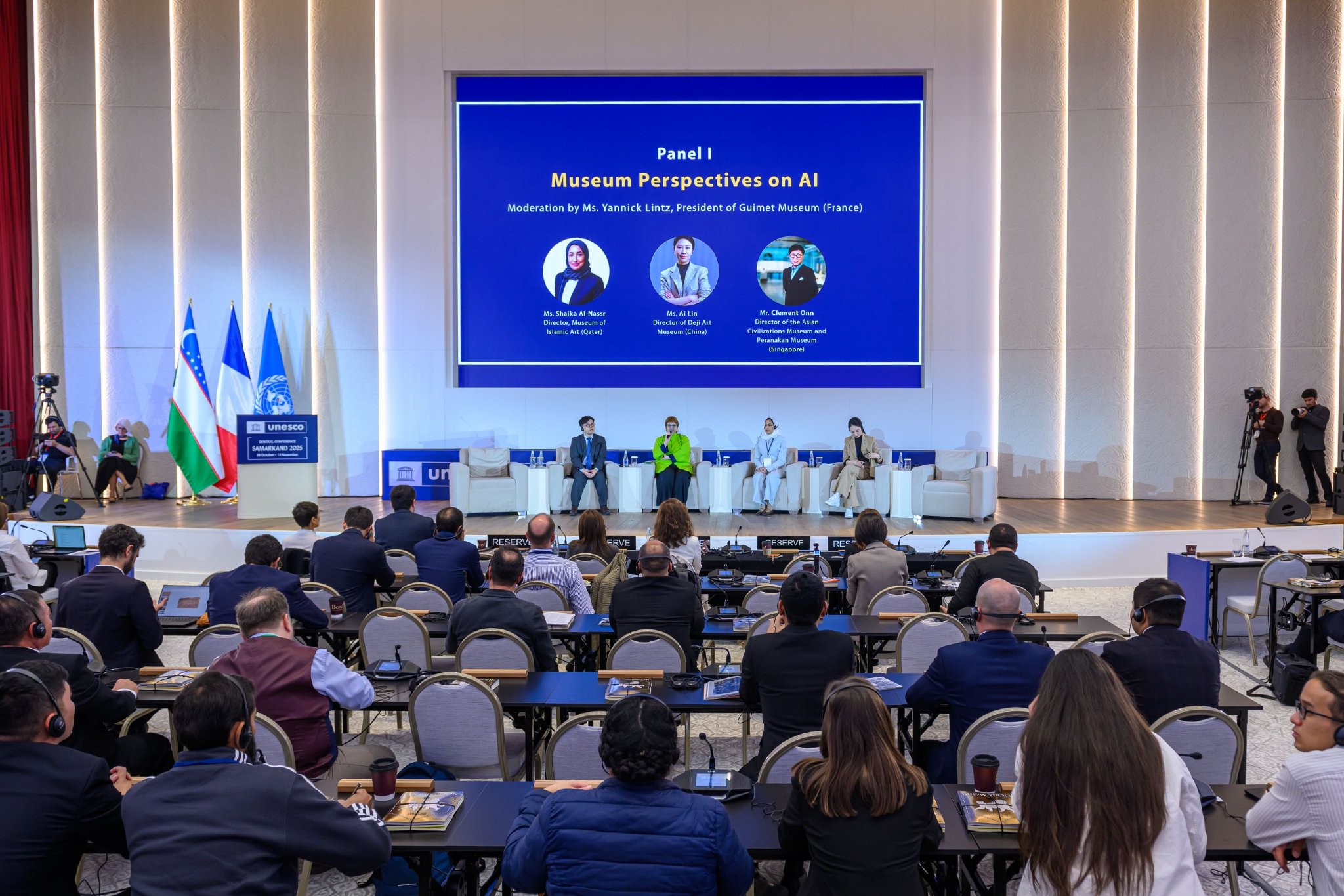 德基艺术博物馆"金陵图数字艺术展"受邀参加第43届联合国教科文组织大会 2025年10月30日至11月13日,第43届联合国教科文组织大会在乌兹别克斯坦撒马尔罕举行。作为此次大会重要议程之一,乌兹别克斯坦艺术与文化发展基金 会携手联合国教科文组织文化部门、法国文化部及吉美亚洲艺术博物馆,于11月1日共同举办以"人工智能在博物馆中的作用"为主题的官方边会。 转自:南报网 数字科技焕新文化遗产,面向全球讲好中国故事 会议首个主题单元"博物馆视角下的人工智能"由法国吉美亚洲艺术博物馆馆长Yannick Lintz女士主持,卡塔尔伊斯兰艺术博物馆馆长Shaika Al-Nassr女士、 德基艺术博物馆馆长艾琳女士、新加坡亚洲文明博物馆和土生华人博物馆馆长Clement Onn先生围绕单元主题展开分享与交流。 本次会议汇聚全球80余位顶尖博物馆馆长、参与文化遗产项目及博物馆活动的知名人工智能企业代表、以及出席联合国教科文组织大会的政府代表。通过案 例研究,深入探讨人工智能如何改变博物馆研究、收藏、保护、诠释和展示有形及无形文化遗产的实践,如何促进多样性和可持续性,激发不同社群参与教 育、体验、反思和知识共享。 作为唯一 ...