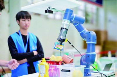 105支高校战队在宁角逐"埃斯顿杯"—— 机器人"派上用场",课堂知识接轨产业需求 机器人正在进行自主抓取挑战︐参赛选手紧 张调试。 企业供图 □ 通讯员 陈欣苇 走进比赛现场,最先吸引目光的是创新型赛道一的机器人自主抓取挑战。来自宿迁学院机电专业的大四 学生于佳月,带着两名学弟正围着他们的六轴机械臂紧张调试,桌面上散落着透明胶带、勺子、瓶装可 乐、罐头、纸巾等多种形态不一的物品。 "这就是我们的命题作文。"于佳月告诉记者,这40种常见物件类型丰富多样,包含透明物体、柔性物 体、大重要物体、细小物体等,比赛前还将加入4个随机物体作为"考题",增加了比赛的挑战性。 为了准备本次赛事,于佳月团队从6月份报名开始就在校园内利用课余时间展开探讨、研究。"为了精准 抓住这些不同材质、重量的东西,我们要不断打磨视觉识别和路径规划算法。"她指着屏幕上不断跳动 的数据说,比如这个850克的瓶装重物,就给机械臂抓取增加了不少难度。 话音刚落,随着坐在屏幕前操作的学弟杨忠义"下达指令",机械臂迅速转动起来,一番识别"思考"后, 果断抓取"小黄鸭"。面对下一个"考题",机械臂顶端的"手掌"缓缓下降,在视觉系统的引导下稳 稳"握"住 ...