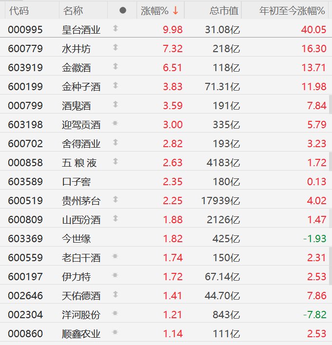 白酒股逆势上涨,五粮液、贵州茅台涨超2%