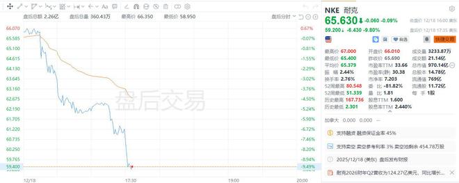 美股异动|耐克盘后大跌近10%,第二财季净利润7.92亿美元同比下降32%