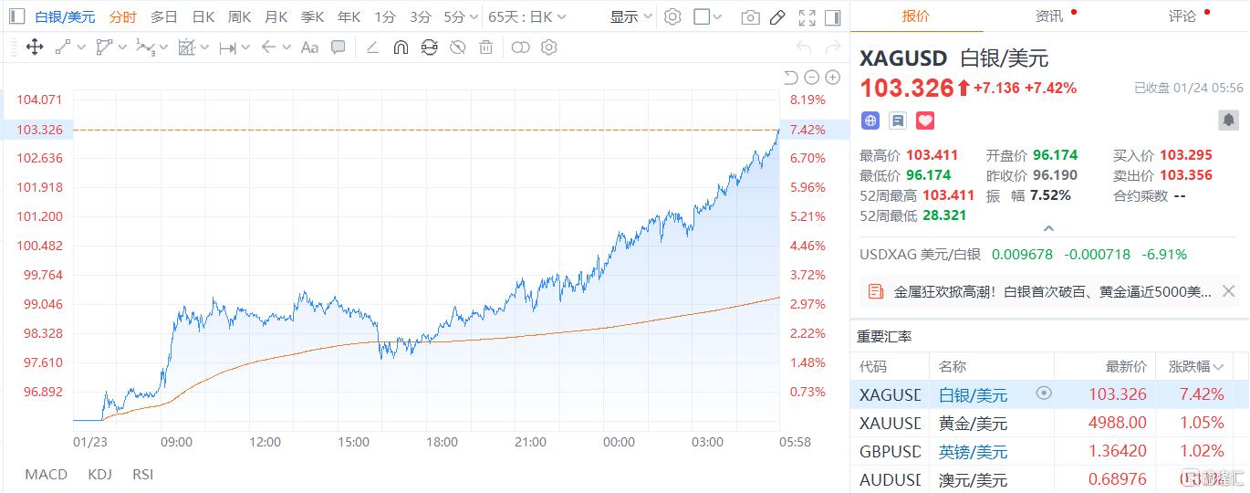 历史新高!白银价格突破103美元,进入“三位数”时代
