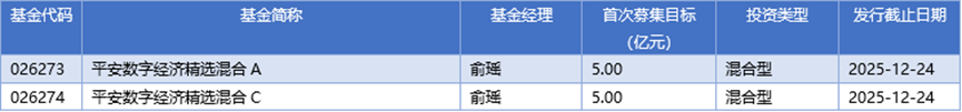市场动态与资金流向 - 市场调整之际,公募基金将港股视为年末核心布局方向,近一个月已有十余家公募密集申报港股科技、消费、红利等主题基金,部分产品出现“五日获批、七日发行”的极速节奏 [1] - 资金借道新基金提前布局中国资产洼地,押注港股基本面修复与估值回归,科技、消费、高股息三大主线有望率先受益,后续外资回流与政策催化或成为行情加速器 [1] - 12月23日,A股三大股指早盘高开高走,午后震荡下跌尾盘一度集体翻绿,截止收盘,沪指涨0.07%报3919.98点,深成指涨0.27%报13368.99点,创业板指涨0.41%报3205.01点,科创50指数涨0.36%报1340.02点,沪深两市成交额1.9万亿元,全市场近3900只个股下跌 [1] 基金发行与产品动态 - 12月23日新发基金共有2只,主要为混合型基金,其中平安数字经济精选混合A募集目标金额达5.00亿元 [2] - 12月23日基金分红29只,多为债券型,派发红利最多的基金是平安广州交投广河高速公路封闭式基础设施证券投资基金,每10份基金份额派发红利2.2000元 [2] - 12月交易仅过半月,中证A500相关ETF合计净流入已突破600亿元,多只单品份额与规模接连刷新上市新高 [2] 机构资金配置趋势 - 截至12月19日,2025年备案的私募股权基金中,保险机构作为有限合伙人累计出资1097.56亿元,较去年同期增长55.85%,金额已突破千亿关口 [2] - 宏观利率下行、监管鼓励长期资金入市以及险资自身对高收益、长久期资产的配置需求形成共振,推动险资加速布局一级市场,预计2026年私募股权仍将是保险资金增配的重要方向 [2] - 中证A500指数兼顾行业均衡与龙头精选的编制方式,契合当前盈利修复与估值再平衡的市场诉求,成为资金布局年末行情的首选宽基工具 [2] 行业展望与配置主线 - 国泰、招商、汇丰晋信、长城等公募先后召开2026年度策略会,展望2026年,“十五五”开局政策红利与宏观经济修复将共振,上市公司业绩有望整体改善 [3] - 市场上涨动力由单一估值驱动转向“盈利+估值”双轮驱动,结构性亮点增多、自由流通市值与居民存款比值仍低、增量资金持续入场,叠加估值整体健康 [3] - 公募基金2026年配置主线锁定AI科技、创新药及内需消费修复,高股息防御与顺周期拐点亦受关注 [3]