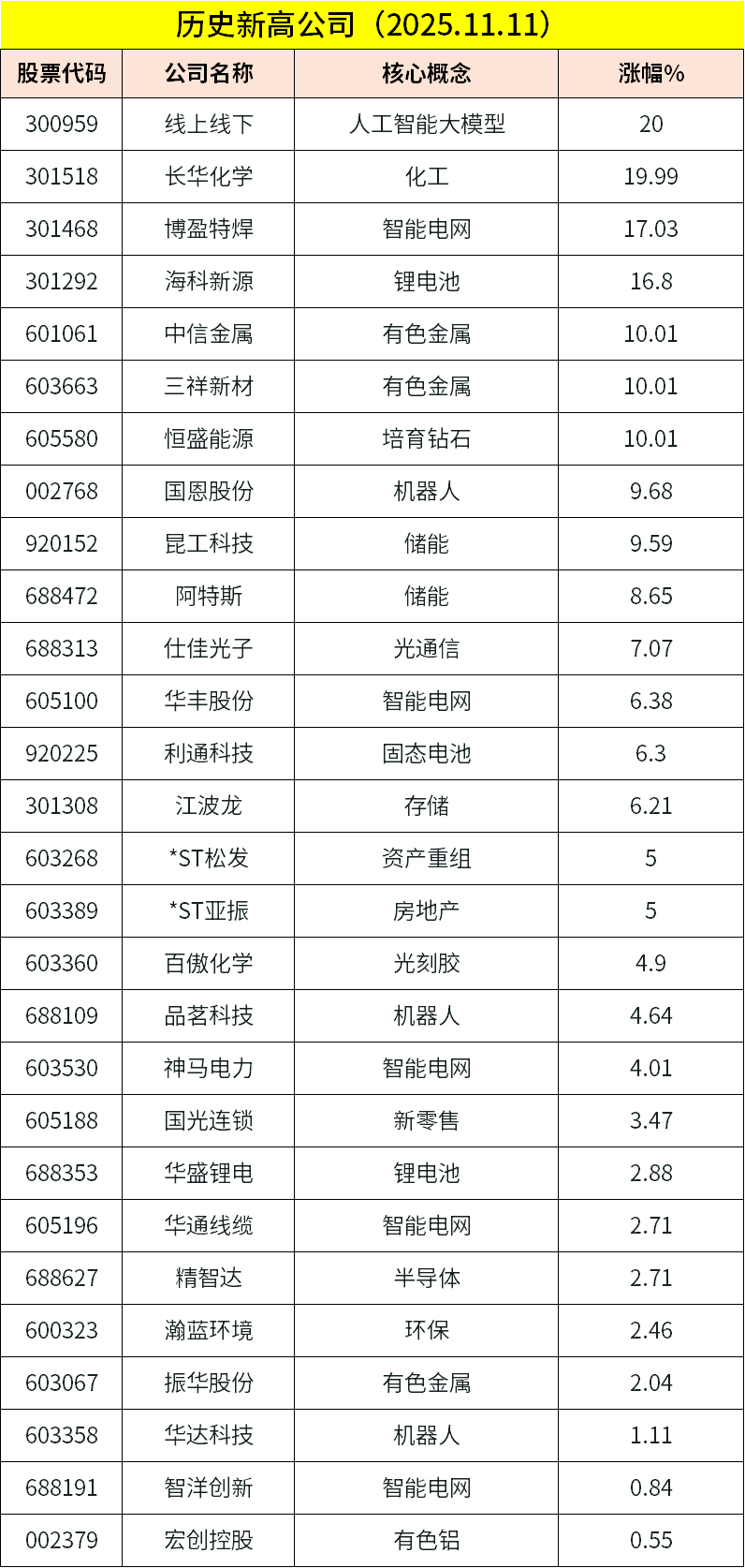 量子计算 - 诺贝尔物理学奖得主约翰·M·马蒂尼斯携手多家芯片公司组成量子扩展联盟,旨在打造实用、可大规模生产的量子超级计算机[1] - 联盟已制定实现量子计算机规模化量产的蓝图并计划正式实施,马蒂尼斯创办的初创公司Qolab正处于技术验证和小规模试产阶段[1] - 微软、谷歌等科技巨头竞逐量子计算机应用落地,中国“十五五”规划建议将量子科技排在未来产业布局首位[2] - 中国“祖冲之三号”超导量子计算机成功实现105个量子比特的相干操纵,集成105个数据比特和182个耦合比特,成为目前世界性能最高的超导量子计算原型机[2] 电力设备 - 美国数据中心供应商Digital Realty和Stack Infrastructure在加州圣克拉拉的两个数据中心项目因当地无法供电而可能闲置数年[3] - 圣克拉拉市目前有57个正在运营或建设中的数据中心,市属公用事业公司硅谷电力公司仍在努力提升其电力容量[3] - 美国AI缺电危机揭示电力已从成本要素转变为战略资源,预计2025-2027年北美AI数据中心电力设备需求年增45%,市场规模超千亿美元[3] - 2025年10月中国对美出口高功率变压器同比增67%,其中80%流向AI数据中心,为中国电力设备制造商创造历史性机遇[3] 生物医药 - 研究人员在常用抗生素次甲霉素A合成过程中发现中间体——前次甲霉素C内酯,对多种革兰氏阳性菌的抗菌活性比原始抗生素高100倍以上[4] - 该中间体能够杀死最令医学界头疼的耐甲氧西林金黄色葡萄球菌和耐万古霉素肠球菌等“超级细菌”[4] - 这一发现为寻找新型抗生素提供了新模式,通过测试天然化合物合成途径中的中间体,有望发现更能有效对抗耐药性的新抗生素[4] 6G - 2025年6G发展大会将于11月13日至14日在北京召开,以创新推进6G全球统一标准制定为核心目标[4] - 大会主题为“智联全球,共建6G技术创新生态”,汇集海内外专家研讨6G应用场景、系统技术体系、标准走向和产业研发成果[4] - 2025年标志着6G标准的元年,全球统一的技术标准是构建6G生态、推动产业规模应用和持续发展的基石[5] - 2025年通信行业处于技术迭代与政策红利叠加期,AI、量子通信、低空经济等新质生产力方向将持续释放增长动能[5] 医药流通 - 上海市药品监督管理局印发《上海市药品现代物流指导意见》,旨在加快药品现代物流发展,形成高效专业的药品现代物流体系[6] - 《指导意见》鼓励药品批发企业配备适合药品储存和实现药品入库、分拣、出库的设施设备和独立的计算机信息化管理物流系统[6] - 医药流通行业今年前三季度总体业绩改善,多家公司收入端回暖,降本增效成果继续彰显,非药调改逐步推进,非药有望成为潜在重要利润增量[6] 锂电池 - 第12届中国(苏州)电池新能源产业国际高峰论坛召开,汇聚海内外电池新能源上中下游全产业链代表[6] - 中国锂电池行业全球竞争优势显著,储能锂电池企业全球出货占比超90%,储能锂电池成为最主要增长极[6] - 锂电池下游应用场景将进一步丰富,行业技术迭代加速,产业向绿色低碳方向发展[6] 机器人 - 特斯拉正筹备扩建得克萨斯超级工厂,新建一座专用设施用于人形机器人Optimus量产,计划实现年产能1000万台目标[7] - 特斯拉已在北加州弗里蒙特工厂设立试点生产线,组装部分Optimus样机,该工厂年产能预计为100万台[7] - 特斯拉股东大会对机器人爬产指引积极,从100万台到可能10亿台,且每年都会有新版本,Optimus会是市值管理重要抓手[8] - 国内人形机器人产业发展全面提速,优必选等行业头部公司屡获亿元级别大单,宇数、智元等行业领军公司积极推进IPO[8] 北斗通信 - 中国移动发布北斗短信业务重大升级成果,新增图片、语音等富媒体消息功能,实现上行40个汉字、下行10个汉字的文本传输能力升级[8] - 在无地面网络信号的极端环境下,用户可通过短信、语音、图片等多种形式沟通信息,为应急通信、野外探险等场景提供通信保障[8] - 北斗短报文从单一文字通信迈向富媒体交互新阶段,全面提升通信效率与业务体验,意味着北斗通信进入“看得见、听得到”的新阶段[8] 宏观与行业新闻 - 国内脑机接口产品首次进入审批“绿色通道”[9] - 上海市商务委等5部门印发《上海市促进餐饮业智能化布局行动计划(2026-2028年)》[9] - 软银出售所持英伟达全部股份套现58亿美元[9] - 禾赛第三季度机器人激光雷达出货量达60,639台,同比增长13倍[9] - 存储厂旺宏NOR Flash明年Q1计划涨价,涨幅或达30%[10] 市场热点主题 - 培育钻石板块活跃,黄河旋风、四方达、恒盛能源等公司因AI驱动高性能钻针市场增长而涨停[13] - 光伏板块表现强劲,亿晶光电、国晟科技、金辰股份等公司受发改委、能源局发布促进新能源消纳和调控指导意见影响而涨停[13] - 大消费板块中,三元股份、浙江东日、中锐股份等公司因10月CPI同比增0.2%及财政将继续实施提振消费专项行动而涨停[13] - 锂电池板块中,享日股份、永太科技、三祥新材等公司因电解液、六氟磷酸锂价格持续上涨而涨停[14] - 机器人板块中,方正电机、冀凯股份、晶华新材等公司受小鹏新一代人形机器人IRON亮相及特斯拉扩产影响而涨停[14] - 智能电网板块中,摩恩电气、三星医疗、炬华科技等公司因机构称国网3批电表超预期及微软CEO表示电力不足成AI发展瓶颈而涨停[14] - DRAM(内存)板块中,三字股份、神工股份等公司因闪迪11月大幅调涨NAND闪存合约价格涨幅高达50%而涨停[14]