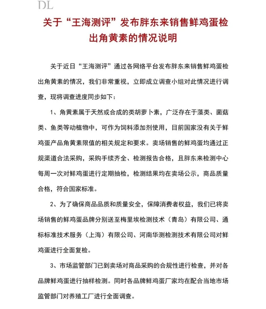 胖东来回应“鸡蛋被检出角黄素”!黄天鹅三问中国食品安全报社