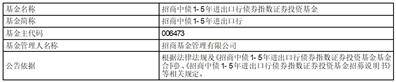 | 馬全名称 | 招商中院1-6年进出口行债券指数正券投资基金 | | --- | --- | | 馬会简称 | 报顾中级1-5年进到10元 | | 基金主代码 | 008473 | | 基金管理人名称 | 排商基金管理有限公司 | | 公告依据 | 根据法律法规及《图商中债书-5年通出口行债券指数证券投资基金基金 合同,《图资中值-1-5年进出口行债券指数正券投资基金融券设备于 30 H T- W ST .. | | 馬会名称 | 招商 CFETS银行间配色情豪报監委投资基金 | | | | --- | --- | --- | --- | | 馬会荷於 | 招商CFETS限行到配色情形指数 | | | | 基金和代码 | 019565 | | | | 基金管理人名称 | 招商基金管理有限公司 | | | | 公司依据 | 根据法律法规及(图画《FETS限行向除色债券指数证券投 资基金属金合同,《图语CFETS银行同球色鼠罗指数正学 | | | | 帮修大额申购配资日 | 投资基金据最说明 图等相关规定。 2025 = 12 18 | | | | 最低大额转换折入机购日 | 2025 11 12 11 18 ...