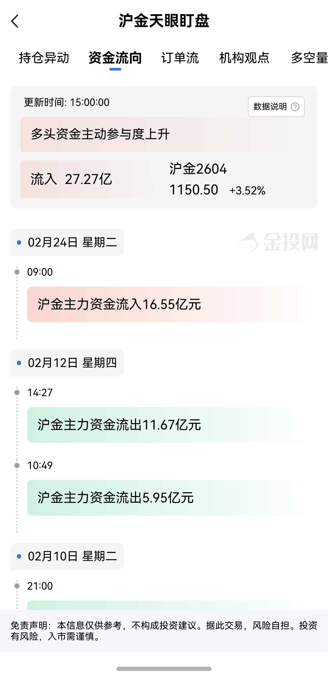 天眼盯盘沪金资金流向:2月24日沪金主力合约资金流入27.27亿