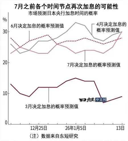 日本央行加息节奏与政治日程的关联 - 日本央行一般避免在国政选举前采取行动 以避免政策变更被政治解读及损害央行中立性 [1] - 日本首相高市早苗决定在1月23日召集的例行国会开幕之初解散众议院 这将影响日本央行的加息节奏 [1] - 日本央行在2025年12月决定加息 被认为包含了避开可能出现的“1月解散众议院、2月选举”政治环境的判断 [1] 政治日程对下次加息窗口的影响 - 若众议院在1月解散 则消除了众议院可能在6月解散并与下一次加息候选时间(6月或7月)重叠的担忧 对日本央行有利 [3] - 6月或7月成为下次加息候选时间 是因为届时春季劳资谈判所决定的较高加薪幅度的实施情况将更加明确 [3] - 利率互换市场对进一步加息(幅度为0.25%)决定时期的概率预测显示 6月为28% 7月为30% 两者合计接近6成 [3] 可能导致加息提前的因素 - 若2月实施众议院选举 日元贬值情况可能加剧并加大物价上涨压力 这可能迫使高市早苗政权允许提前加息 [5] - 日本首相高市早苗可能在春季访美并举行日美首脑会谈 若此前日元不断下跌 预计外部会对日本央行施加加息压力 [5] - 市场概率预测显示 3月和4月合计加息概率为39% 其中4月概率为30% [5] 历史先例与当前相似性 - 1990年曾出现1月解散众议院并在2月举行大选的先例 当时日本央行于3月决定加息 [6][7] - 1990年的情况同样处于日本央行加息周期 自民党在2月选举中获胜后 日本央行于3月决定提高贴现率 [7] - 当前年初以来持续一定时间的日元贬值趋势、地缘政治风险等与1990年情况极为相似 [7]