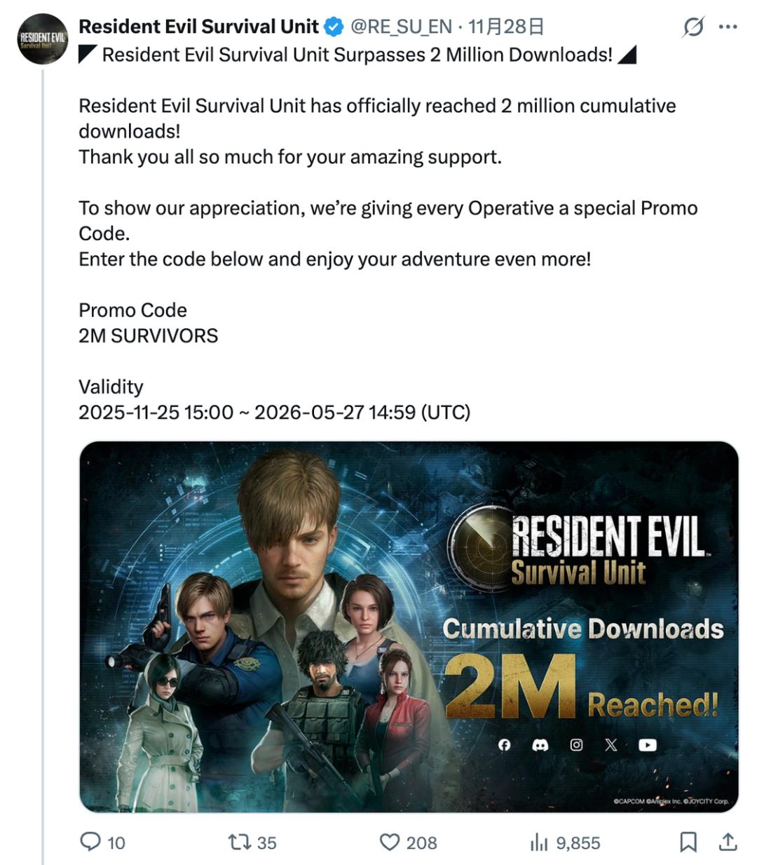 而在11月20日,也就是游戏上线的两天后,官方便宣布《生化危机:生存小队》的下载量已突破100万次。后续,这个数字更是迅速突破了200万。 重塑经典之作。 前段时间,由卡普空 (CAPCOM) 、JOYCITY与Aniplex联合开发的策略手游《Resident Evil Survival Unit》 (本作尚无官方中文译名,暂译《生化危 机:生存小队》) 在公布后便吸引了大量关注。 更令人惊喜的是,除了里昂、克莱尔、吉尔等系列标志性角色之外,知名插画家天野喜孝以特别设计师的身份参与创作了原创怪物"摩尔特 姆"(Mortem),这无疑为游戏注入了全新的视觉冲击和挑战。 了解《生化危机》系列的玩家都知道,这是卡普空旗下的经典丧尸题材恐怖游戏系列。而这款手游,则为经典的《生化危机》宇宙带来了一个意想不到的 新维度。 《生化危机:生存小队》并非对系列经典玩法的简单复刻。它大胆地选择了一条差异化的赛道——SLG,这在IP的衍生产品中显得颇为独特。 (游戏在Google Play和App Store都有着不错的评分) 游戏设定在一个平行宇宙,讲述了一条围绕实验体苏醒、逃离以及在一座废弃宅邸基础上重建生存据点的原创故事线 ...