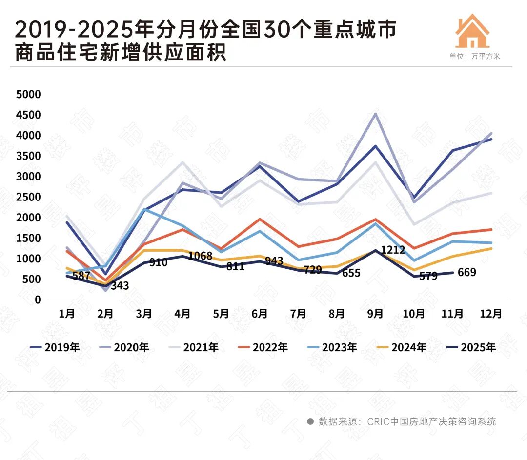 11月楼市最新数据出炉,一二手房各项指标仍在稳步修复中。 首先,新房市场供求关系持续改善。 30个重点城市11月新房新增供应面积环比增长16%,而相应的库存面积环比微降1%,这是一个非常重要的微观数据,这意味着新增供应很大程度上被需 求端承接并消化,整体去化在改善。 对应的项目去化率来看,30个重点城市11月平均开盘去化率环比增长3个百分点至34%。 其二,二手房成交环比由降转增,整体仍处于止跌回稳通道。 重点30城成交面积环比上升14%,上海、成都、武汉和南京等多个城市成交环比增幅超过20%。 这些信号,表明市场在持续调整中已出现一些结构性企稳的迹象。 新房供求关系持续改善 先来看新房供应,11月房企推盘积极性小幅回升,30个重点城市11月预期新增供应669万平方米,环比增长16%。其中一线城市环比增长23%,二三线城 市环比增长14%。 一线城市中广州阶段性放量,因上月基数较低,环比翻番;二三线城市中苏州、东莞、常州等城市集中放量,环比翻番,而杭州、西安等热点城市"以销 定产"模式下,供应呈现出同环比齐增态势,累计同比降幅持续收窄。 从新房成交来看,整体持续走稳。11月30个监测城市成交面积为815万平方 ...
