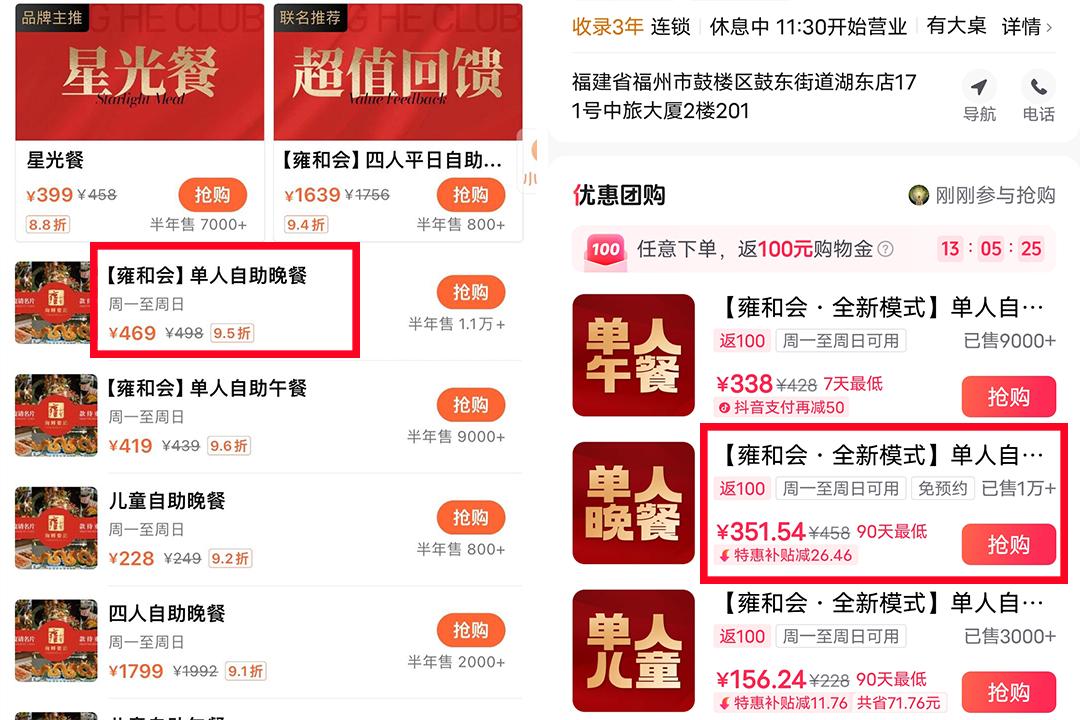 曾经与"贵价"二字绑定的海鲜火锅,开始降价了。 比如雍和会海鲜自助,2024年9月品牌曾官宣升级,单人自助从原来的400元价位区间,暴涨至午餐549元、晚餐599元,并打出了"500种菜品、490种海 鲜"的宣传语。 但高价仅仅维持了几个月,今年年初,品牌就悄悄将价格降回了400元区间价位。11月中旬,雍和会福州湖东路店再次进行了闭店升级,店铺更名为"雍福 ·海鲜姿造自助",单人价格更是直接降百元,调整为了午餐358元/位、晚餐388元/位,且增加了包含每桌100元押金,用餐超时每20分钟,按30元/人收取 在内等等多条用餐规则。 ◎左图为2024年6月团购价格,右图为2025年12月团购价格 当然,这股高端海鲜火锅降价潮并未局限于福州。如江苏的松庐和牛海鲜火锅,也于今年暑假期间开启了"鲜价行动",活动开启后,原价796元的双人餐 变为了499元。同时全线产品均价直降30%+,帝王蟹增设轻量规格、重磅产品半份服务。 今年7月底在北京国贸开业的海底捞臻选店,主打澳式海鲜火锅,开业时人均600元以上,还要收取10%-15%的服务费;到9月底,据新浪科技报道,臻选 店就已上线了两款价位较低的套餐,分别是398元双人 ...