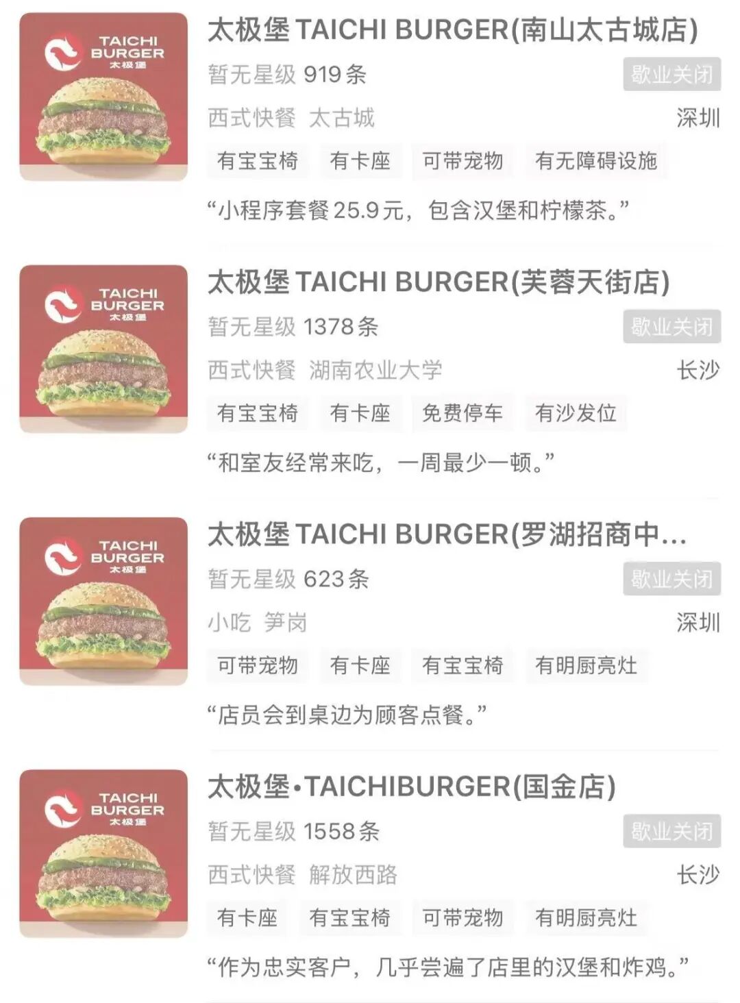 据了解,太极堡成立于2024年,以"东方汉堡"概念和新中式美学设计迅速出圈,一度被网友誉为"汉堡界的霸王茶姬"。 然而,这个成立只有一年的品牌,如今却频频传出关店消息,太极堡究竟怎么了? 从爆火到批量关店,又一家网红汉堡"凉了"? "才开业了没几个月啊,广州首家太极堡怎么没营业了?" "谁能告诉我长沙太极堡究竟怎么了?" 近期,多地网友发帖称,太极堡在当地均出现了闭店的情况。 △图片来源:大众点评截图 01 而在服务上,太极堡门店也颇为贴心,设置寄存柜,提供免费Wifi、冷热水、牙线、发圈、充电宝,雨天有爱心雨伞,收获不少顾客好评。 通过鲜明的风格、概念和贴心的服务,太极堡各大门店在开业初期便吸引了大量消费者的关注与打卡。有网友回忆,太极堡深圳金光华店开业之初人气爆 棚,自己排队两小时,才终于吃上一个汉堡。 另据太极堡官方微信8月22日发布的信息,其深圳金光华店为全国第十七家门店,这意味着,过去一年,太极堡至少拓展至17家门店。 批量闭店,有门店只"存活"3个多月 太极堡成立时间并不长,2024年11月30日才在长沙万家丽广场开出全国首店。 诞生之初,太极堡就采用"高举高打"策略,试图以东方美学重新定义汉堡, ...