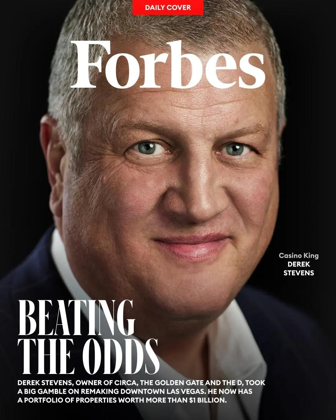 作为赌场品牌Circa、金门(Golden Gate)和The D 的所有者,德里克·史蒂文斯(Derek Stevens)也曾有过一次豪赌:投身拉斯维加斯市中心的改造工 程。如今,他手握价值超10亿美元的资产组合,其中包括全球最大的体育博彩中心,以及"罪恶之城"规模最大的泳池。 12月末的一个周二,傍晚将近六点,拉斯维加斯市中心弗里蒙街的金门赌场里,约500名赌客正排着长队,只为领取一张免费饮品券——凭券可与赌场老 板、亿万富豪德里克·史蒂文斯喝两杯。被称为"炫舞调酒师"的姑娘们衣着清凉,随着着黑眼豆豆合唱团的《I Gotta Feeling》的节奏舞动。人群中,两位 客人走上前与史蒂文斯握手致意。 "每家赌场都得有自己的吸睛招数,而免费畅饮总能吸引众人前来。"58岁的史蒂文斯说道。2006年,他买下拉斯维加斯历史最悠久的酒店赌场综合体金 门,五年后又将同在弗里蒙街南侧的The D收入囊中。而街对面,便是他的得意之作:2020年斥资10亿美元建成的Circa赌场。 图片来源:ETHAN PINES FOR FORBES 每张饮品券都装在一个金色信封中,里面通常装着一张预存5美元的消费卡,运气好的话金额甚至可 ...