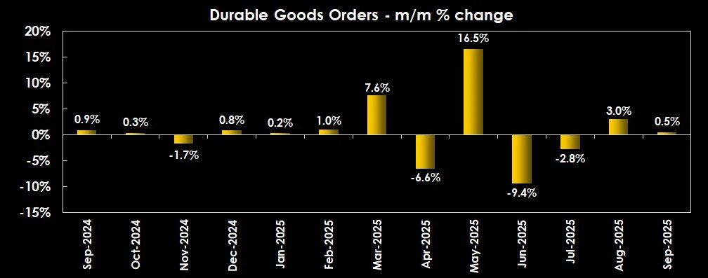 宏观经济数据 - 9月耐用品订单环比增长0.5%,高于市场预期的0.3% [1] - 剔除运输项目的核心耐用品订单环比增速为0.6%,高于预期和前值 [1] - 上周初请失业金人数继续回落,降至近数月低点 [3] - 宏观数据组合消解了“硬着陆”担忧,为资金回流科技与成长板块奠定基础 [7] 美股市场表现 - 美股三大指数早盘集体高开,科技/AI板块成为最强主线 [7] - 纳指100涨幅一度逼近1%,标普500涨超0.8% [7] - 高β板块同步反弹,市场对过去两周的技术性回调进行修复 [7] - 本周迄今标普500上涨逾3%,纳指涨幅超过4%,道指上涨超过2% [9] 美联储褐皮书与市场预期 - 美联储褐皮书显示美国整体经济活动“变化不大”,政府停摆对消费者支出造成负面影响 [7] - 市场对美联储11月降息的押注升温,推动风险资产修复 [10] - 预计美联储将在12月开始降息,并在明年再实施两次降息 [23] 甲骨文公司分析 - 甲骨文股价在过去一个月暴跌近30%后出现强劲反弹,收涨4.02%,但仍较9月高点跌去逾40% [11] - 公司剩余履约义务突破5000亿美元,在过去6个季度增长411% [17] - 数据中心建设贷款已达至少650亿美元,并计划发行约380亿美元新债 [22] - 自由现金流一度转为约-59亿美元,信用违约互换价格上升 [22] 华尔街对甲骨文的分歧 - 看多方如德意志银行目标价375美元,汇丰目标价382美元,均给出买入评级 [14] - 看空方如机构DA Davidson将目标价从300美元下调至200美元,持中性态度 [15] - 市场对超过5000亿美元的剩余履约义务存在“信息不对称”担忧 [16] 美股市场主线分析 - FOMC会议成为关键催化剂,扭转原有交易模式 [20] - 市场情绪已完成“真投降”,对冲基金和真实资金投资者经历投降时刻 [20] - 高盛预测明年GDP增长率处于2.0%至2.5%的有利区间 [20] - 真实资金与对冲基金正从科技板块转向医疗保健板块 [20] - 超大规模企业预计2027年资本支出将达到6140亿美元,AI基础设施供应商面临巨大机会 [20]