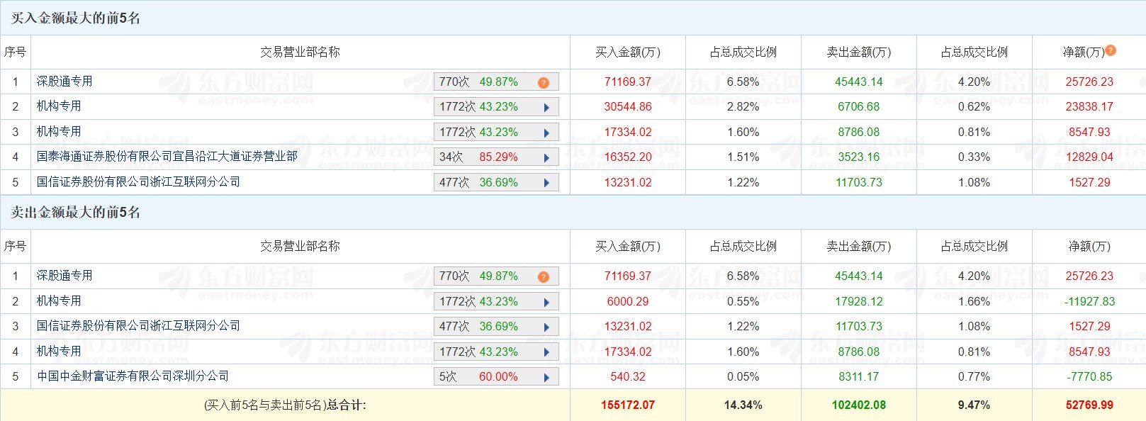 龙虎榜丨雷科防务涨3.45%,深股通净买入2.57亿元,三机构净买入2.05亿元