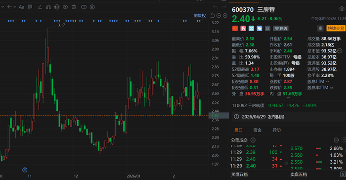 A股异动 | 三房巷大跌8% 控股股东及一致行动人全部持股被司法冻结