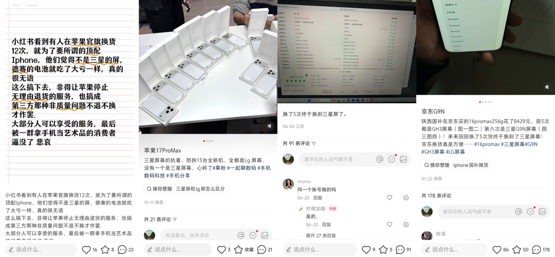 一年一度的新 iPhone "抽奖"活动,终于还是来了。 这里说的抽奖,不是那些博主"我们给大家抽一款全新 iPhone!"的抽奖,而是在小红书、贴吧等平台上,有这么一群 iPhone 用户,他们利用苹果的 14 天 无理由退换货政策,不断退货、换货,誓要"抽"到一台显示没有色差、没有色偏、字体通透,且必须屏幕产自三星的 iPhone。 当前用在 iPhone 上的三星面板,型号一般是"G9N""G9P""G9Q", LG 的则是"GVC""GH3"。所以,只为一个"G9N"开头的屏幕面板,他们可以换货 3 次、5 次,甚至 10 次、15 次,和售后磨破嘴皮子、和客服耍足心眼子。 有人说,这是浪费时间的吹毛求疵;有人说,这是花了万把块买手机该有的完美主义。先不论立场和对错,大家口中的"三星屏",真有如此优秀,值得着 了魔一样地频繁退换机? 这背后的原因,比一句"吹毛求疵"、"完美主义"复杂得多。 一、退换货的源动力 手机这样的产品,有时候买到有一点品相瑕疵、功能问题的,退换货一次两次也很正常,但在功能正常的前提下,去退换三五次,甚至十几次,难道真的 单纯为了个"三星屏"? 当然不是。 目前 iPhone 上 ...