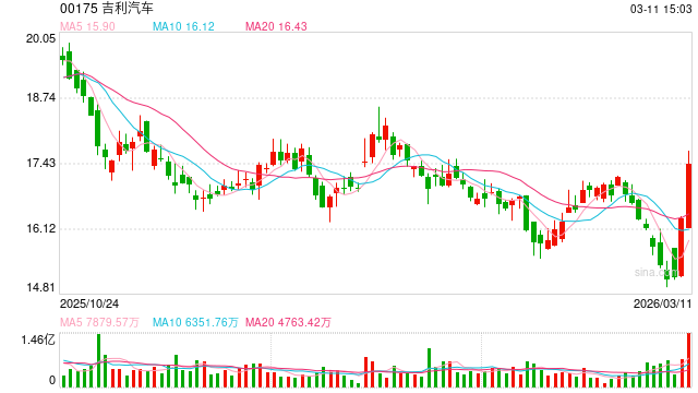 公司股价与交易表现 - 3月11日,吉利汽车股价盘中表现强劲,大幅拉升,跑赢港股大盘及一众汽车股,创今年历史新高 [2] - 截至发稿,吉利汽车股价报17.48港元,涨幅达8.77% [2] - 当日成交额超过1885.41亿港元 [2] 高端化战略与产品进展 - 资本市场高度关注吉利汽车的高端化进展 [4] - 旗下极氪品牌新车型极氪8X将于3月16日晚举办技术发布会 [4] - 该车首发搭载最新版千里浩瀚G-ASD高阶辅助驾驶系统,以及全球混动领域首个全栈900V高压动力系统 [4] - 极氪8X满油满电综合续航突破1000公里,并支持6C超充技术 [4] - 该车型被业内视为有望接棒极氪9X的又一款高端爆款车型 [4] 未来信息披露计划 - 更详尽的高端化战略布局及2025年度财务表现,将于3月18日召开的吉利汽车年度业绩发布会上正式披露 [4]