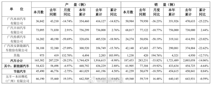 广汽集团 2025 年 12 月新能源汽车销量 61,905 辆,同比下降 19.92%;2025 年累计新能源汽车销量为 433,634 辆,同比下降 4.64%。 从品牌来看,广汽本田、广汽丰田、广汽传祺、广汽埃安 2025 年 12 月销量均同比下降;2025 全年, 仅广汽丰田 2025 年销量同比增长。(IT之家) | ਸ਼ 位 | | | 8 | 量(辆) | | | | | 旬 | 量(铜) | | | | --- | --- | --- | --- | --- | --- | --- | --- | --- | --- | --- | --- | --- | | | 本月数 | 去年 | 月度 | 本年 | 去年 | 累计 | 本月数 | 去年 | 月度 | 本年 | 去年 | 累计 | | | | 同期 | 同比 | 累计 | 累计 | 同比 | | 同期 | 同比 | 累计 | 累计 | 同比 | | 广汽本田汽车 | 36,842 | 43,210 | -14.74% | 354,460 | 416,127 | -14.82% | 50,984 | 79,950 | -36.23% | ...
