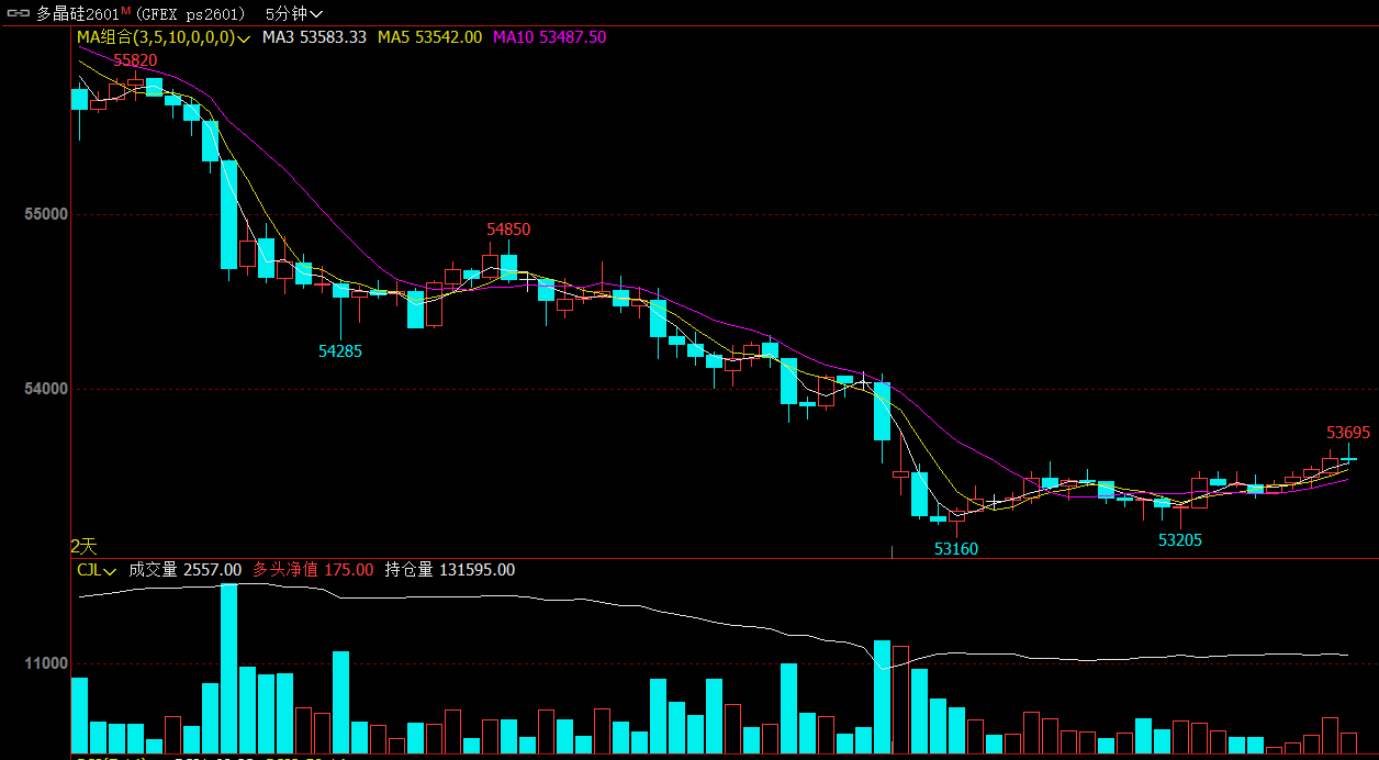 多晶硅期货周三盘初延续跌势,主力2601合约跌逾2%,受宏观情绪面影响,国内商品普遍下跌,文华商品指数盘中跌近0.5%。 目前多晶硅的市场价格呈现一定的回调,广发期货研报显示,多晶硅现货价格下跌,期货回落收升水,下游年底以降负去库为主,需求增长有限。其中,多 晶硅N型复投料价格为52.2元/千克(较前期下跌50元/吨),N型颗粒硅价格为50.5元/千克(持平),成交均价为N型复投料5.32万元/吨(持平)。工业硅方 面,华东地区Si5530均价为9450元/吨(持平),新疆99硅价格为8800元/吨(持平)。市场交投依然平淡,价格上行乏力 光大期货指出,多晶硅现货价格保持弱势震荡,现货市场主要面临价格承压的局面。具体来说,多晶硅N型复投料现货价格为52000元/吨,最低交割品的价 格为52500元/吨,现货贴水转为升水425元/吨。尽管下游采购需求保持刚需,但市场交投依然平淡,价格上行乏力。消息面扰动逐渐减弱,市场情绪也开始 有所降温 新湖期货分析指出,现货市场价格保持弱稳,部分规格的报价有所松动,下游采购情况未见明显改善,交投依然较为平淡。尽管大厂基地集中减产,西北部 分企业则保持爬产,整体供给有所收紧,但 ...