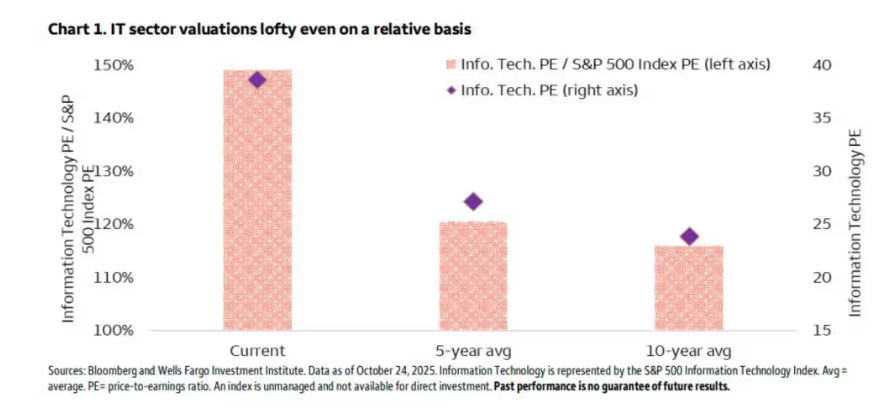市场情绪与近期表现 - AI股在近期回调后于本周初再度回暖,但CoreWeave显现的压力信号给周二市场情绪蒙上阴影 [1] - 投资者陷入两难,既担心错过AI交易红利,又忧虑市场出现互联网泡沫式崩盘 [1] 机构评级与板块表现 - 富国银行投资研究所将标普500信息技术板块评级从“看好”下调至“中性”,核心原因是估值过高 [1] - 该评级调整逆转了4月4日的上调,自4月4日至10月24日,该板块累计上涨60%,跑赢标普500指数逾25个百分点 [1] - 机构认可AI热潮将持续推动板块营收与盈利增长,并承认该板块具有债务水平相对较低、自由现金流生成能力强的优势 [1] - 与AI相关的资本支出正处于快速增长通道,大型科技公司三季度财报均超出市场高预期 [1] 估值与风险担忧 - IT板块估值已大幅飙升,对板块过度乐观的情绪与居高不下的预期,让其短期容易出现不及预期的情况 [2] - IT板块一直是中美贸易谈判焦点,紧张局势并未完全消散 [4] - 尽管部分龙头企业公布AI相关资本支出大幅增长,但投资者对投资回报率与债务融资的担忧有时仍会引发市场震荡 [4] - 该板块易出现负面意外,甚至可能因企业财报小幅不及预期而回调 [4] 投资策略建议 - 建议将IT板块配置比例削减至其市场权重来锁定收益 [4] - 在减持科技股的同时,推荐将资金投向拥有“看好”评级的工业、公用事业和金融板块 [4] - 工业和公用事业板块可让投资者通过辅助数据中心趋势参与AI红利,且估值低于科技板块 [4] - 金融板块将受益于收益率曲线陡峭化与更有利的监管环境,并能通过并购活动和债务融资支持AI发展,目前相对于标普500指数存在显著估值折价 [4]