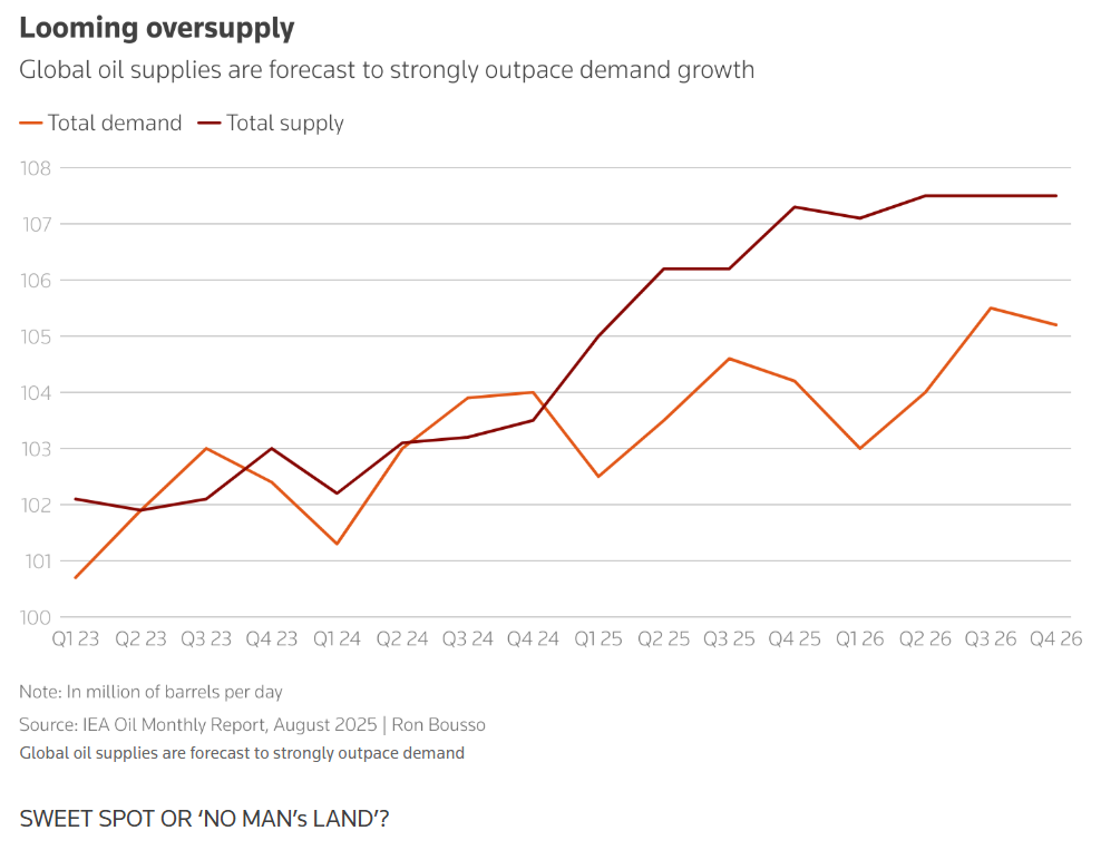 近几个月,油价在每桶60至70美元的相对狭窄区间内震荡,既反映了对石油供应增加的担忧,也体现了对贸易局势和地缘政治冲突的顾虑。 与此同时,在当前价格区间内,美国作为全球最大石油生产国的地位依然稳固。美国能源信息署(EIA)10月将2025年原油产量预期上调10万桶/日,至 1350万桶/日,同时也上调了明年的产量预期。 市场方向陷入迷茫 特朗普对油价将维持区间震荡的乐观判断是否正确?答案取决于你询问的对象。 国际能源署(IEA)预测,明年石油市场将出现400万桶/日的巨额过剩,接近全球需求的4%,这可能导致油价暴跌,迫使许多生产商大幅减产。 对美国总统特朗普而言,这或许是个"甜蜜区",但对石油生产商来说,这里却是一片"无人区"。 10月中旬,原油价格触及该区间下限,这让特朗普得以在10月22日兑现威胁,对俄罗斯两大石油巨头卢克石油公司(Lukoil,LKOH.MM)和俄罗斯石油 公司(Rosneft,ROSN.MM)实施严厉制裁——这两家公司的产量约占全球总产量的5%。 特朗普可能认为,对俄罗斯升级经济战不会导致严重混乱和价格飙升,因为如今的石油市场供过于求。 与此同时,由于越来越多的"规避制裁油轮"用于运输 ...