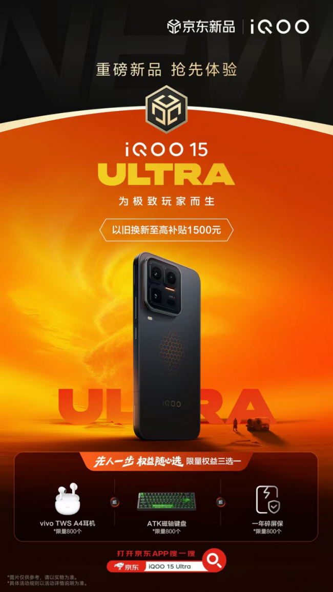 来京东先人一步预约iQOO 15 Ultra 9.9元锁定保修服务全家桶