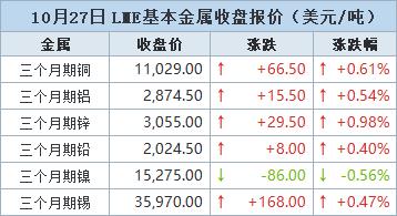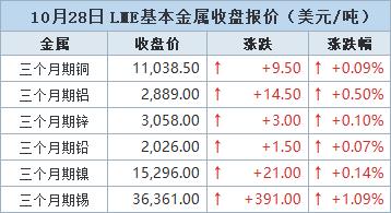 金属普涨 期铜持平,关注美联储会议和贸易前景【10月28日LME收盘】