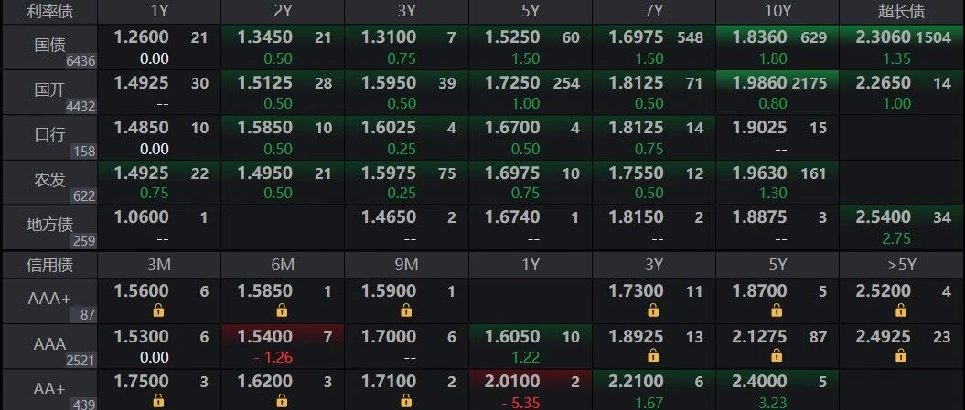 市场核心观点 - 市场趋势由未来预期驱动,而非简单对标历史数据 [1] 宏观经济与市场情绪 - 前总统特朗普言论暗示中东战事可能很快结束,推动美股反弹,并导致油价下跌 [5] - 1-2月进出口数据表现超出市场预期 [5] - 受上述因素影响,股市出现小幅上涨 [5] 债券市场表现 - 资金面呈现均衡偏松态势,长债收益率涨跌互现 [3] - 10年期国债活跃券250016开盘于1.808%,盘中最低触及1.804%,最高上行至1.814%,最终收于1.8075%,收益率下行0.35个基点 [5][8] - 30年期国债活跃券250220收于1.9740%,收益率下行0.50个基点 [8] - 10年期国开债活跃券2500006收于2.2750%,收益率上行0.40个基点 [8] 资金市场状况 - 央行公开市场当日净回笼资金1448亿元 [3] - 银行间市场资金利率保持平稳,DR001位于1.32%附近,DR007位于1.44%附近 [3] - 质押式回购市场成交活跃,R001加权利率为1.39%,成交量达78787.48亿元,占市场总成交量90.24% [4] - R007加权利率为1.50%,成交量7175.12亿元,较前一日增加1512.88亿元 [4]