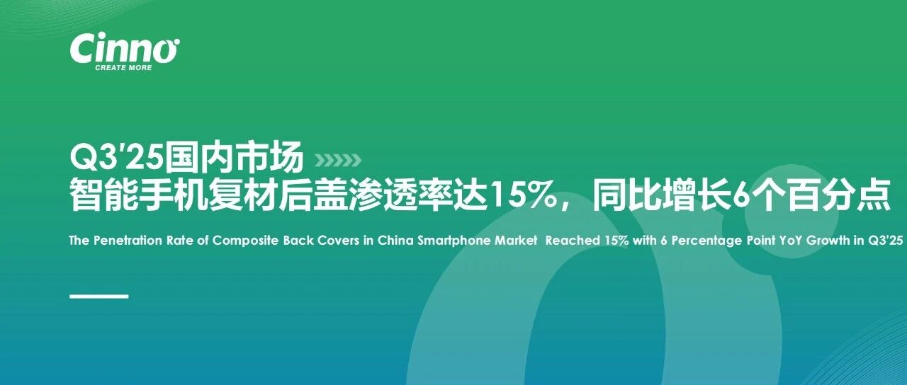 Q3'25国内市场智能手机复材后盖渗透率达15%,同比增长6个百分点