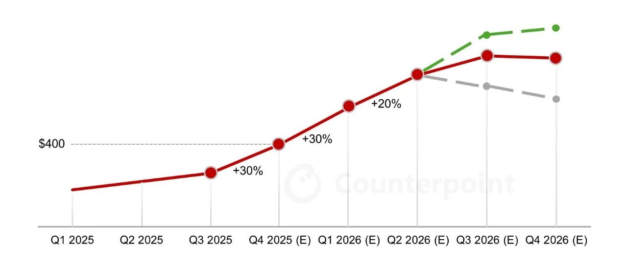 以下文章来源于Counterpoint 咨询 ,作者Counterpoint Counterpoint 咨询 . Counterpoint Research 是一家专注于科技行业的全球性研究公司,在全球主要的市场有着强大的影响 力。我们致力于为合作伙伴提供准确、及时的市场数据,帮助他们做出明智的决策。 受关键芯片短缺影响,内存价格预计将在 2026 年 Q2 之前在当前基础上再上涨约 50%。 目前,传统 LPDDR4 面临的涨价风险最大。 与此同时,随着英伟达在服务器端大幅提升对 LPDDR 的需求,围绕先进芯片出现了更广泛、更 长期的风险因素,从而向整个消费电子市场外溢。 根据 Counterpoint Research 最新发布的《GenAI 的内存解决方案》双周报告 ,今年以来内存价格 已累计上涨 50% 。在此基础上,价格预计将在 2025 年 Q4 继续上涨 30%,并可能在明年初再上升 约 20%。 当前的核心问题之一是传统 LPDDR4 供给趋紧。为了满足AI对先进新品的强劲需求,供应商纷纷将 产能转向更高端的工艺,导致整体市场结构被打乱。现货市场价格出现倒挂:服务器和 PC 使用的 DDR5 ...