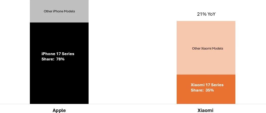 iPhone 17 与小米 17 系列在中国上市首月热销