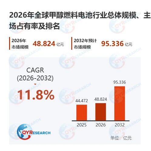 甲醇燃料电池市场概述 - 甲醇燃料电池是一种以甲醇为燃料,通过电化学反应将化学能直接转化为电能的发电装置,不经过燃烧过程 [2] - 主要分为直接甲醇燃料电池和重整型甲醇燃料电池,前者结构简单,后者功率输出更高但系统更复杂 [2] - 相较于氢燃料电池,甲醇在常温常压下为液体,在储运和补给方面更具便利性 [3] 结构与技术 - 核心结构包括电堆系统、燃料供给系统、空气供应系统、冷却与水管理系统以及控制模块,电堆是核心部件 [3] - 关键技术在于催化剂活性、电解质膜性能以及燃料利用效率,需解决甲醇氧化反应动力学慢、甲醇渗透等问题 [3] - 随着材料技术和系统集成能力提升,甲醇燃料电池在小型化与便携式应用方面取得进展 [3] 应用领域 - 广泛应用于便携式电源、备用电源和小型分布式发电系统,如户外设备、通信基站和应急电源 [4] - 在军事、海洋设备、无人机、物联网设备和远程监测系统等领域,因其高能量密度和燃料补给便捷性而具有优势 [4][9] - 在分布式能源和微电网系统(如岛屿、矿区)中具备应用潜力,可与可再生能源结合实现能源多元化配置 [9] 多维度分类和参数 - 按技术路线分为直接甲醇燃料电池和重整型甲醇燃料电池,系统效率分别为30%–40%和40%–55% [5] - 按电解质类型分为质子交换膜型和固体氧化物型,后者工作温度达500–800°C,系统效率可达60% [5] - 按功率等级分为微型、小型、中型和大型,覆盖小于100瓦到大于50千瓦的范围 [5] - 关键性能参数包括寿命(3,000–40,000小时)、燃料消耗率(0.4–0.7升/千瓦时)等 [5] 市场规模与增长 - 2025年全球甲醇燃料电池市场规模达到6.54亿美元,预计2026年将达到7.18亿美元 [6] - 未来六年(预计至2032年)年复合增长率为11.8% [6] 产业链分析 - 上游涉及甲醇原料、催化剂、质子交换膜、双极板材料及功率电子器件等,绿色甲醇发展支撑行业低碳转型 [8] - 下游核心市场为便携式电源、备用电源和小型分布式发电,通信基站是重要应用领域 [8] - 下游用户关注系统可靠性、燃料运输成本、能量密度、小型化水平及安全性 [8][9] 行业政策 - 行业发展与全球清洁能源转型、碳减排目标及氢能与合成燃料战略密切相关 [10] - 部分国家将绿色甲醇和替代燃料纳入能源发展规划,为行业提供政策支持 [10] - 电气安全标准、燃料储运规范及环境排放法规对系统设计与应用提出合规要求 [10] 发展趋势 - 技术向提高功率密度、降低贵金属催化剂用量以及延长使用寿命方向发展 [11] - 绿色甲醇产能扩大和分布式能源需求增长为技术在特定场景下带来持续发展机会 [11] - 行业面临系统效率相比氢燃料电池略低、催化材料成本较高、甲醇渗透以及来自锂电池或柴油发电机的竞争等挑战 [11] 进入壁垒 - 行业具备技术与资本壁垒,需掌握电化学材料研发、电堆设计与系统集成技术及规模化制造能力 [12] - 下游客户多为通信、能源或军用等专业领域,对产品可靠性和长期运行验证要求高 [12] - 建立稳定客户群体和示范项目经验是市场进入的重要条件 [12]