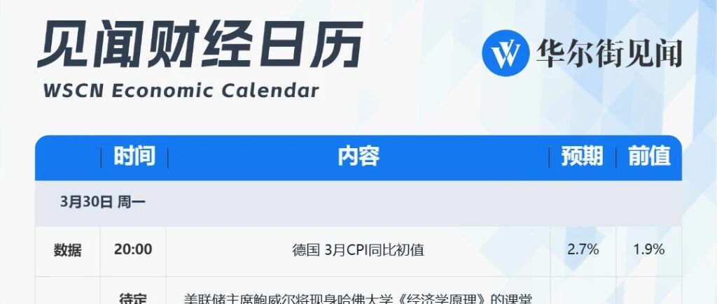 文章核心观点 下周(3月30日至4月5日)的财经事件将围绕三大核心主线展开:宏观数据验证与地缘博弈、产业政策变革与涨价潮、以及国内财报季高峰[5] 宏观经济数据与事件 美国关键数据 - **非农就业**:4月3日将公布美国3月非农就业报告,市场预期新增5.5万人,前值为减少9.2万人;彭博预测增加8万人,失业率预期稳定在4.4%[7] - **前瞻指标**:4月1日将公布美国3月ADP就业人数变动,作为非农数据的前瞻指引[8] - **制造业指数**:4月1日将公布美国3月ISM制造业指数,市场预期为52.2,前值为52.4,预示制造业延续扩张[9] 中国关键数据 - **制造业PMI**:3月31日将公布中国3月官方制造业PMI,2月数据为49.0%[10] - **民间PMI**:4月1日将公布中国3月RatingDog制造业PMI,前值为52.1[3] 其他地区数据 - **德国通胀**:3月30日将公布德国3月CPI同比初值,预期2.7%,前值1.9%[2] - **日本通胀与景气**:3月31日将公布日本3月东京CPI同比,预期1.6%,前值1.6%;4月1日将公布日本一季度短观大型制造业景气判断指数,预期16,前值15[2][3] - **韩国出口**:4月1日将公布韩国3月出口同比,预期44.7%,前值29%[3] - **欧元区PMI**:4月1日将公布欧元区3月制造业PMI终值,预期51.4,前值51.4[3] 地缘政治与重要会议 - **中东局势**:美国国务卿称战事还将持续2至4周,美伊接近展开实质性谈判;美国国防部正为在伊朗展开为期数周的地面行动做准备[2][12] - **G7会议**:3月30日,G7财长及能源部长召开会议,讨论释放战略石油储备议题[2][12] - **法国总统出访**:3月31日至4月2日,法国总统马克龙访问日本;4月2日至3日,对韩国进行国事访问[2][17] - **美联储官员讲话**:下周包括纽约联储主席威廉姆斯、圣路易斯联储主席穆萨莱姆、芝加哥联储主席古尔斯比在内的多位FOMC票委将发表讲话[18][19] - **鲍威尔活动**:美联储主席鲍威尔将于3月30日现身哈佛大学《经济学原理》课堂,参加一场讨论活动[2][15][16] 产业政策与涨价动态 政策变动 - **光伏出口退税取消**:财政部、税务总局公告,自2026年4月1日起,取消光伏等产品增值税出口退税;电池产品增值税出口退税率由9%下调至6%,并于2027年1月1日起取消[3][13] - **印尼暴利税**:印尼财长表示,如果政府批准,镍和煤炭暴利税可能于4月1日实施[24] 半导体与元器件涨价潮 - **国际芯片厂商**:德州仪器、恩智浦、英飞凌等自4月1日起上调部分产品售价,其中德州仪器部分产品涨幅最高可达85%,英飞凌主流产品涨幅预计在5%至15%之间[3][21] - **被动元器件**:全球最大MLCC供应商村田自4月1日起对AI服务器和高端车规级MLCC产品涨价,涨幅在15%-35%之间;三菱瓦斯化学宣布4月1日起对CCL等所有产品涨价30%;国巨第三次发涨价函,4月1日起调涨钽电容产品价格[3][22] 其他行业涨价 - **造纸行业**:岳阳林纸自4月1日起,纸袋纸等系列产品接单价格上调200元/吨;晨鸣纸业自4月1日起白卡纸系列产品每吨涨价200元[23] - **钢铁行业**:宝钢股份、鞍钢股份、本钢股份将于四月将热轧、管材、线材等十余个品种基价统一上调200元/吨[23] - **航空燃油附加费**:国内航线燃油附加费确定4月5日上涨[23] 公司动态与事件 - **蚂蚁集团**:要约收购耀才证券的交易预计将于3月30日完成[2][14] - **小鹏汽车**:自2026年4月1日起,公司中文名称将由“小鹏汽车有限公司”变更为“小鹏集团”[3][26] - **vivo发布会**:vivo X系列春季新品发布会将于3月30日19:00举行[25] - **清明节假期**:4月4日至6日放假;成都、南京、苏州等地春假安排为4月1日至3日,与清明节相连可连休6天[3][20] 财报季与新股 - **财报高峰**:下周国内财报季步入高峰,众多公司将密集发布年报[5] - **重点公司**:包括“大模型第一股”智谱、“国产GPU”壁仞科技和天数智芯、光通信龙头中际旭创,以及赛力斯、中国神华、美的集团、舜宇光学科技、中国中免、迈瑞医疗、顺丰控股、中微公司、芯原股份等[2][27] - **其他财报公司**:涉及行业广泛,包括联想控股、万科、海伦司、中国石油、农业银行、兆易创新、澜起科技等[2][27][28][29][30][31] - **新股发行**:下周将有3只新股发行,预计合计募资35.51亿元;3月30日发行赛英电子、有研复材;4月3日发行大普微[28]