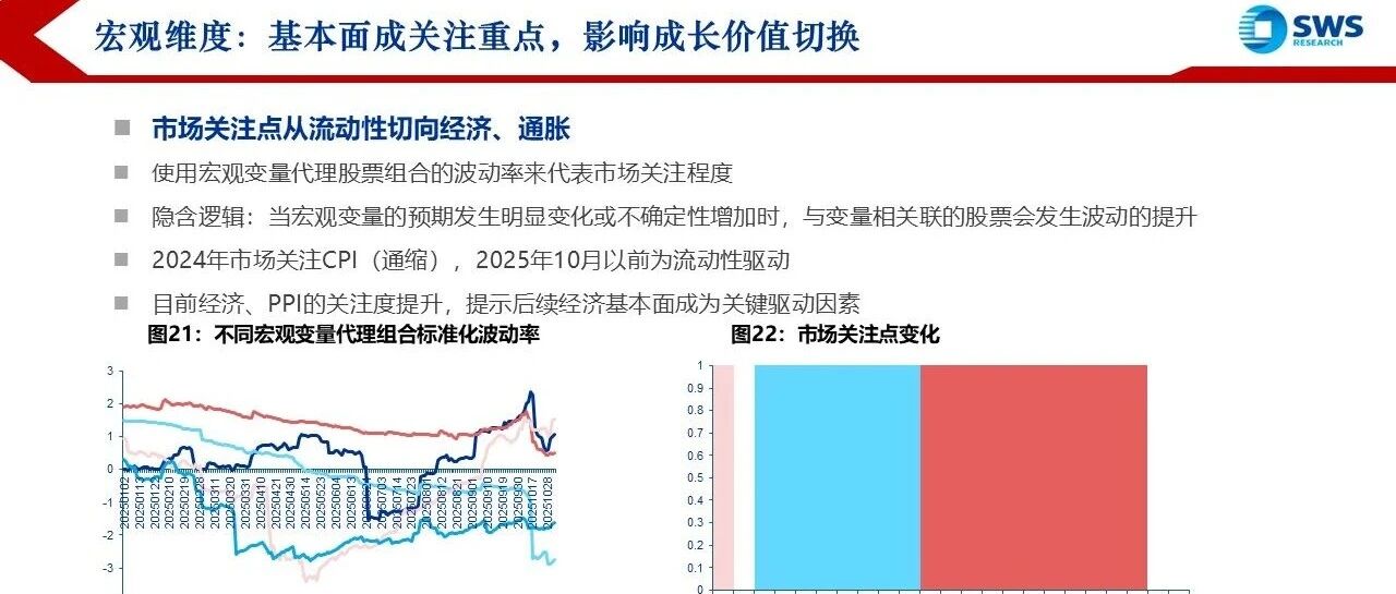 址 联 你 究 报告 基本面主导风格因子切换,等待趋势确认 2026年金融工程投资策略 证券分析师:沈思逸 A0230521070001 A0230520070003 双虎 沈思逸 A0230521070001 联系人: 2025.11.14 乘势面上 甲门远源 · 2026资本市场投资中 投资要点 今年以来因子表现:成长因子表现突出,长期动量表现偏弱,体现为今年市场行业、板块轮动较快,市场存在关注主题、 短期追涨情绪上升的现象,和"有限关注"因子的历史表现情况相似,散户赚钱效应有所提升;低波动率在沪深300内 表现偏弱,也映射了今年市场呈现高波动特征。 ■ 宏观量化框架复盘:我们构建经济、流动性、信用三个维度各自寻找与风格、行业的对应关系,并通过市场对宏观数据 的反映构成微观映射,近三年的宏观经济周期切换更频繁。经济前瞻指标判断25年上半年转入下行,年末重新出现回升 信号;流动性量与价呈现互相牵制的特点,体现货币政策整体平稳,而市场交易利率上行,下半年多数时间将流动性修 正为偏弱;信用指标整体偏好,25年上半年交易信用扩张、与社融吻合,下半年逐步转向交易收缩,11月正式触发修正。 ■ 宏观量化风格判断: 价 ...