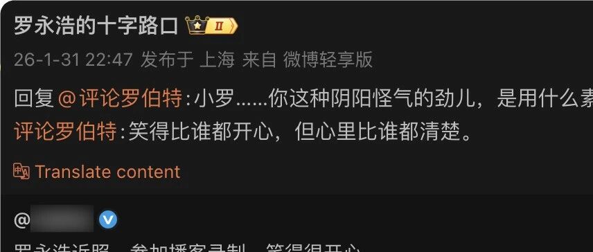 1 月 31 日晚间,老罗的微博终于更新了。掐指一算,果然是 15 天过来了。 之前老罗立过一些 flag,比如:公布华与华华彬的录音,还要收拾项立刚。期待 他重出江湖后能看到后续。 《 真吊胃口!罗永浩公布华杉录音文件名。网友:别博流量了,再不公布人设崩塌 》 《 罗永浩骂"智障"引爆回击,项立刚连写 5 篇"大作文"后突停更。老罗:"忙完正事后一个也不放过!" 》 1 月 16 日晚间, 西贝贾国龙准备直播和老罗"干架",结果双方被上头出手禁 言。 在他微博留言区,欢迎回归的声音真不少。 ...