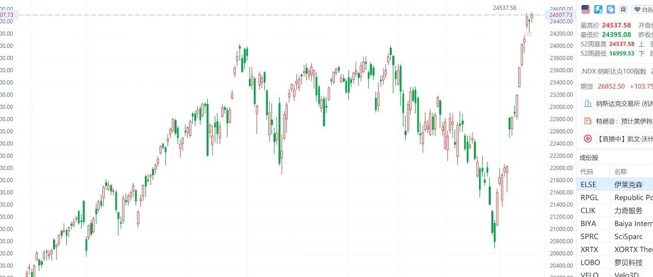 准确 快速 权威 专业 7x24h电报 头条新闻 VIP资讯 实时盯盘 道琼斯指数涨0.60%,报49739.98点;标普500指数涨0.35%,报7133.95点。 下载财联社APP获取更多资讯 今日美股盘中, 纳斯达克综合指数涨幅扩大, 现涨0.5%,最新报24525.45点, 盘中刷新历史新高。 ...