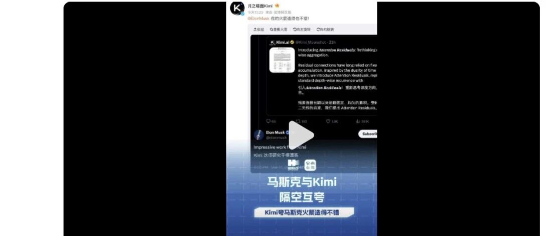 公司技术突破 - 中国AI独角兽公司月之暗面发布名为“注意力残差”的重磅技术报告,突破大模型架构沿用十年的底层瓶颈 [1] - “注意力残差”技术通过赋予模型自主选择关注此前层级信息的能力,显著优化了计算效率 [5] - 实验数据表明,经过改进后的48B规模模型训练效率提升了1.25倍 [5] 行业影响与评价 - 该技术报告在硅谷AI圈引发关注,并促成了公司创始人杨植麟与全球科技巨头埃隆·马斯克之间的互动 [1] - 马斯克在社交媒体上公开点赞,称“Kimi的这项工作令人印象深刻” [1] - 前OpenAI研究副总裁Jerry Tworek评价该技术标志着“深度学习2.0”时代的到来,认为其将对未来AI模型架构的标配产生深远影响 [5] 公司后续动向 - 月之暗面创始人杨植麟将于北京时间3月18日凌晨亮相英伟达2026年度GTC大会 [6] - 届时,他将向全球开发者深入介绍包括“注意力残差”在内的下一代模型架构路线,进一步展示中国AI团队在底层技术创新上的硬核实力 [6]