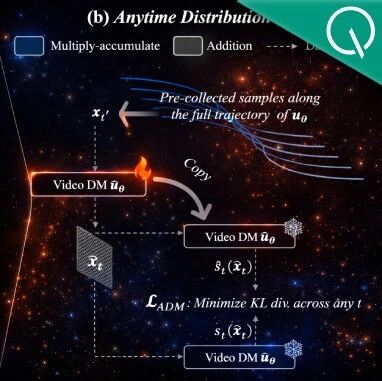 行业背景与挑战 - 视频生成进入大规模时代,但计算成本高昂,10秒视频的token数超过5万,自注意力机制的计算复杂度为O(n²),导致模型运行效率低下 [1][2] - 将自注意力替换为线性注意力(O(n))是理想的解决方案,但在视频扩散模型上直接替换会导致生成质量崩溃 [3] LINVIDEO技术方案概述 - LINVIDEO是一个无需数据、无需重新预训练的后训练框架,旨在实现视频扩散模型的高比例线性化替换,同时保持生成质量 [3] - 该框架解决了视频扩散模型“难线性化”的核心问题,即替换过程敏感,不同注意力层对生成质量的影响不均衡,手工选择替换层易导致性能下降或加速不明显 [7] - 论文已被CVPR接收,在Wan 14B模型上,LINVIDEO实现了1.71倍的端到端加速,结合4步蒸馏后,加速比可达20.9倍,且视频质量几乎无损 [5][6] 技术原理与创新 - 在替换层选择上,LINVIDEO提出选择性迁移,将层选择视为可学习的二分类决策问题,让模型自动、渐进地将部分注意力层迁移到线性形式,以最小化性能损失 [15] - 在优化目标上,LINVIDEO提出任意时刻分布匹配,沿采样轨迹在任意时间步上对齐样本分布,能更有效地将线性化后的模型行为拉回原模型,且无需训练辅助模型,效率更高 [11][15] 实验结果与性能 - 实验在Wan 1.3B和Wan 14B模型上进行系统评测,使用VBench的8个维度及VBench-2.0进行综合评估 [16] - 在Wan 1.3B模型上,LINVIDEO的延迟为68.26秒,实现了1.43倍加速,其各项质量评分(如图像质量、运动平滑度等)与基线FlashAttention2(延迟97.32秒)相当或略有提升 [17] - 在Wan 14B模型上,LINVIDEO的延迟为1127秒,实现了1.71倍加速,质量评分保持稳定;结合DMD2蒸馏后,延迟降至92.56秒,实现20.9倍加速,质量仅有轻微下降 [17][19] - 核心结论:LINVIDEO在保持生成质量的前提下,将视频扩散模型的推理速度提升至更实用的水平,报告了1.43至1.71倍的加速,结合蒸馏后延迟可降低15.9至20.9倍 [19] 总结与意义 - LINVIDEO表明,视频扩散模型线性化的难点不在于线性注意力本身,而在于如何迁移模型并恢复质量 [25] - 该框架通过选择性迁移解决替换层选择的敏感性,通过任意时刻分布匹配解决视频场景对齐的效率问题,推动了视频扩散模型从O(n²)向更可扩展的O(n)推理路径发展 [25]