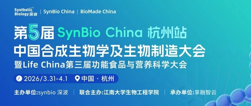 9天倒计时!第五届中国合成生物学及生物制造大会暨Life China第三届功能食品与营养科学大会,3月杭州见!