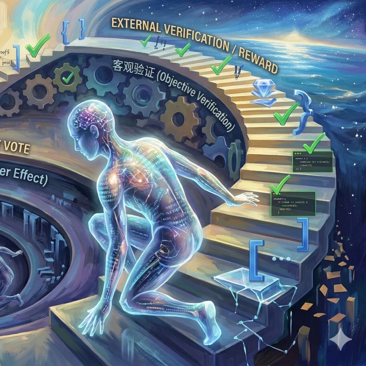 交叉熵规模定律的失效与分解 - 核心观点:交叉熵损失本身并不真正遵循规模定律,其在大模型上失效的原因是它作为一个“混合度量”,内部只有一部分(误差熵)严格遵循幂律缩放,而其他部分(自对齐和置信度)不随模型规模改善,形成了干扰噪声[2][6] - 来自清华大学的研究团队在ICLR 2026的论文中,通过将交叉熵分解为误差熵、自对齐和置信度三个部分,揭示了只有误差熵严格遵循幂律缩放,这为理解大模型训练规律提供了新视角[2][3] 交叉熵的全新分解方法 - 研究团队提出了一种基于排名的新指标——基于排名的误差,该指标衡量正确token在模型输出中的排名位置,比关注概率得分的交叉熵更稳健,不受后处理操作影响[6][8] - 基于RBE,交叉熵被数学分解为三项:误差熵(衡量RBE分布的香农熵)、自对齐(刻画模型概率得分与RBE分布的对齐程度)和置信度(反映模型输出概率得分的整体大小)[8] - 在训练过程中,三个成分呈现清晰的优化顺序:模型早期集中降低误差熵,之后才开始显著优化自对齐和置信度[10] 误差熵是唯一遵循规模定律的成分 - 研究者在Wikipedia、C4、The Pile的GitHub子集三个数据集上,对32个从数百万到数百亿参数的预训练模型进行了系统检验[20] - 结果显示,在对数-对数坐标下,只有误差熵呈现接近线性的下降趋势,与模型参数量之间存在稳健的幂律关系,而自对齐项在模型增大时没有改善甚至轻微上升,置信度项则波动较大,缺乏一致规律[21] - 定量拟合证实,误差熵的拟合优度在所有数据集上均显著高于交叉熵本身,说明交叉熵的缩放趋势主要由误差熵驱动[23] 规模定律失效的内在机制 - 在小模型中,误差熵占据了交叉熵总量的近90%,由于其遵循幂律,使得整体交叉熵表现出良好的幂律趋势[25] - 随着模型规模增大,误差熵占总损失的比例逐渐下降,而不遵循缩放规律的自对齐和置信度项占比相应上升,这些不缩放的成分像“噪声地板”,使得交叉熵偏离纯粹的幂律预测,模型越大,偏差越显著[25] 对行业实践与理论研究的启示 - 在训练层面,直接以误差熵作为训练信号或评估指标,可能比交叉熵更能准确反映模型能力的提升,从而指导更高效的训练策略和资源分配[27] - 在理论层面,该分解揭示模型规模的增长本质上提升的是排序能力,而非概率校准能力,这为理解大模型的能力边界和优化方向提供了新指引[27]