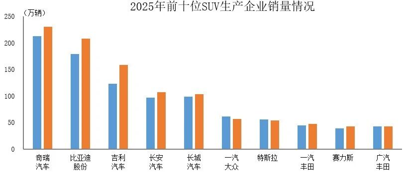 数据简报 | 2025年前十位SUV生产企业销售情况简析