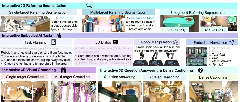 核心观点 - 清华大学、上海交大人工智能学院、腾讯ARC Lab、Anyverse Intelligence等机构联合提出通用具身大模型Mamba-3VL,该模型将状态空间模型Mamba引入3D视觉-语言学习,旨在解决具身智能的“任务适配性”难题,突破“单任务专精”局限 [2] - 模型通过三大核心方法创新,精准支持18类异构任务,从基础3D感知到高级具身交互全覆盖,系统性探索并刷新了具身模型的能力上限 [3] - Mamba-3VL在多个基准测试中刷新性能纪录,并展现出极强的泛化能力,仅需微调1%的LLM参数即可快速适配新任务,为低成本拓展任务边界提供了可能 [11][13] 核心方法创新 - **多模态 Mamba Mixer 模块**:创新设计“双扫描 + 通道扭曲”机制,通过关系优先空间扫描(融合近邻实例扫描NIS与远距实例扫描FIS)捕捉局部与长程空间关联,并通过通道扭曲实现视觉几何与语言语义的深度绑定,解决3D点云无序性问题并适配不同任务的模态交互需求 [5] - **实例感知动态位置编码(IDPA)**:实现“几何先验 + 语义调制”双驱动的动态位置编码,通过EdgeConv几何嵌入注入3D物体几何先验,并利用语言调制实例适配器(LISA)基于文本语义动态扭曲3D实例空间特征,提升异构任务适配灵活性 [6][9] - **统一查询解码框架与多任务输出头**:采用“统一输入-灵活输出”设计,将多种3D数据统一编码为实例查询,通过堆叠Mamba Mixer与IDPA层进行统一特征提取,并设计分割头、Grounding头、生成头三大通用输出头,实现无需修改架构即可适配不同类型任务 [6][9] 18类异构任务能力 - **3D视觉-语言基础理解任务(6类)**:包括单目标指代分割、多目标指代分割、边界框引导指代分割、单目标视觉Grounding、多目标视觉Grounding、3D密集描述生成,筑牢具身智能的感知与理解基石 [8][10] - **3D语言推理与问答任务(4类)**:包括基础3D问答、情境推理问答、多跳推理问答、3D场景对话生成,赋予具身智能逻辑思考能力 [9][10] - **3D实例分割任务(2类)**:包括闭集3D实例分割与开集3D实例分割,强化具身智能的精细感知能力,后者无需重新训练即可分割未见类别 [9][14] - **高级具身交互与规划任务(6类)**:包括任务规划、具身导航、机器人操作、3D场景对话交互、跨模态检索、开放场景适配任务,迈向能行动、会规划的实用具身智能 [11][14] 性能与效率突破 - 在ScanRefer数据集上,Unique指标达79.9%,Multiple指标达48.9%,超越PQ3D等SOTA模型 [15] - 在Scan2Cap密集描述任务中,Cider@25指标达91.2%,Cider@50指标达84.0%,生成描述更精准连贯 [15] - 在机器人操作与具身导航任务中,unseen任务成功率远超CLIPort、LEO等模型 [15] - 线性计算复杂度较Transformer模型效率提升显著,处理大规模3D场景时无性能衰减 [15] 行业意义与发展方向 - 研究打破了任务壁垒,证明具身模型可通过统一架构适配感知-理解-推理-交互全链路任务,无需为单一任务设计专属模块 [17][20] - 效率与性能兼得,为真实场景部署奠定基础,并首次系统性验证了具身模型处理18类异构任务的可行性,为探索百任务、千任务通用具身智能提供了蓝本 [17][20] - 相关技术可直接应用于机器人交互、自动驾驶场景理解、虚拟现实、智能家居控制等领域,推动具身智能从“单场景专精”迈向“全场景通用” [17][18]