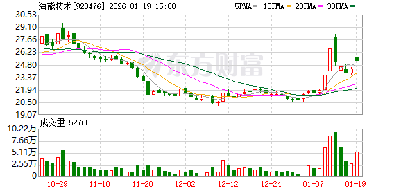 公司业绩预告 - 海能技术发布2025年年度业绩预告,预计实现归母净利润4100万元至4400万元,较上年同期的1307.17万元增长213.65%至236.61% [1] - 公司预计2025年实现营业收入约3.62亿元,同比增长约16.77%,各系列产品收入均实现增长 [1] - 公司2025年实现盈利,且净利润同比上升50%以上 [1] 业绩增长驱动因素 - 行业市场需求整体回暖,高端仪器国产制造趋势显著,设备更新政策逐步落地 [1] - 公司在新材料、新能源、制药等领域增长较快 [1] - 公司在高端仪器智能化、数字化方面取得较快进展,完善数字化管理系统应用,推进精益管理,运营效率提升 [1] - 在整体毛利率水平保持稳定的情况下,公司整体盈利能力显著提高 [1] 公司基本情况 - 海能未来技术集团股份有限公司成立于2006年11月29日,是一家专注于食品安全、药品安全监督领域分析仪器与解决方案的国家级专精特新“小巨人”企业 [2] - 公司于2022年10月14日登陆北京证券交易所 [2] - 截至2026年1月16日收盘,公司股价为24.35元/股,当日上涨2.44%,总市值约为20.74亿元 [2] 市场背景 - 该业绩预告是继林泰新材之后,北交所公司发布的第二份2025年业绩预告 [1]
