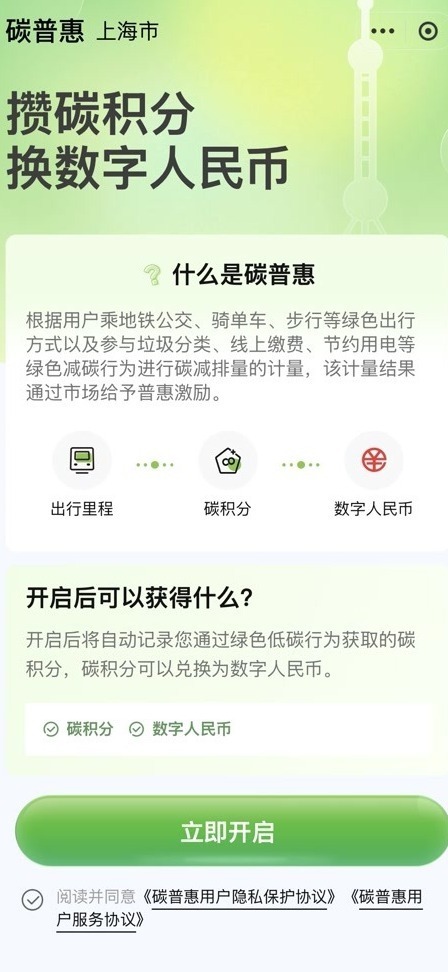 数字人民币App 2.0版本核心更新 - 数字人民币App迎来2.0版本,实现钱包余额计息功能,并上线“碳普惠”小程序服务,率先在上海地区落地 [1] - 迭代更新后的数字人民币逐步融入银行存款体系和居民资产配置结构,成为金融体系中的重要基础设施 [1] 碳普惠功能上线 - 生活服务专区新上线“碳普惠”功能,自动记录用户绿色低碳行为产生的碳减排量并量化为“碳积分”,积分可按规则兑换成数字人民币 [2] - 目前“碳普惠”在上海地区上线,首批接入Metro大都会(上海地铁)、哈啰出行和T3出行三大平台 [2] - 每1250g碳积分可兑换0.01元数字人民币 [2] - 运营方计划持续引入更多低碳场景并加快拓展参与地区,构建多城市协同的碳普惠服务网络 [4] 钱包余额计息功能 - 自2026年1月1日起,数字人民币实名钱包余额开始按活期存款利率计息 [5] - 用户可在App内查看活期余额、上季度结息数额及年利率信息,当前活期存款挂牌利率统一为0.05% [5] - 结息日为每年3月20日、6月20日、9月20日和12月20日,结息后次日入账 [5] - 以钱包常年存放10万元计算,按0.05%活期利率每年可多赚50元利息 [5] - 商业银行的数字人民币存款纳入存款保险范畴,享受最高50万元限额偿付,安全保障与普通银行存款一致 [8] 政策背景与行业意义 - 钱包余额计息基于中国人民银行近期出台的《关于进一步加强数字人民币管理服务体系和相关金融基础设施建设的行动方案》 [9] - 该方案明确数字人民币将从数字现金时代迈入数字存款货币时代,新一代计量框架、管理体系等于2026年1月1日正式启动实施 [9] - 市场分析认为,数字人民币正从纯粹的“数字现金”属性向兼具“数字存款”属性演进,进入标准化运营新阶段 [10] - 用户获得类似现金的便捷性,银行获得数字人民币的资产负债管理权,可通过理财、信贷等业务盘活资金,监管端则提升宏观调控效率及反洗钱等监管穿透力 [10] - 数字人民币成为“存款货币”后,将可以更便利地接入全球银行间支付系统,拓展在跨境贸易、投融资中的应用 [11] 发展建议与未来展望 - 分析人士建议,数字人民币试点范围可扩大到全国,通过发放消费券、领取补贴等方式全面丰富线上线下场景应用 [11] - 建议从技术和制度两个层面加强用户数据和隐私安全保护,遵循“小额匿名、大额依法可溯”原则,建立完善用户信息采集、存储和调用制度 [11] - 数字人民币具有法币地位,运营机构品牌声誉较强,其软硬钱包等多元形态、智能合约等应用未来可期 [10]