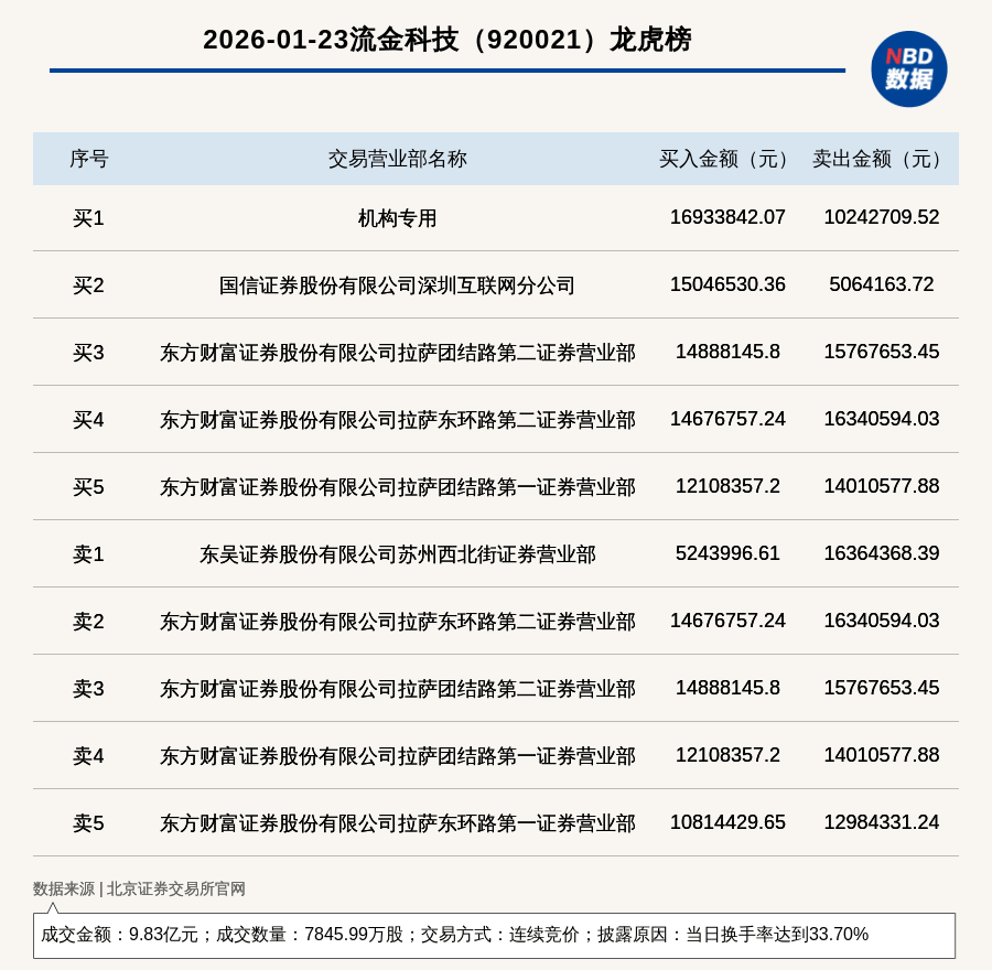 机构席位买入1693.38万 北交所上市公司流金科技登龙虎榜
