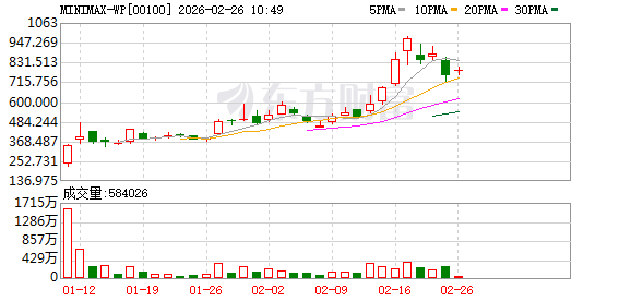 公司股价表现 - 港股MINIMAX盘中一度上涨超过6% [2] - 截至发稿时,股价上涨5%,报792港元 [2] - 截至发稿时,成交额达4.27亿港元 [2]